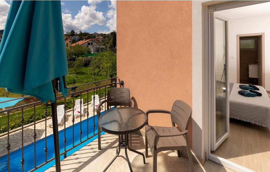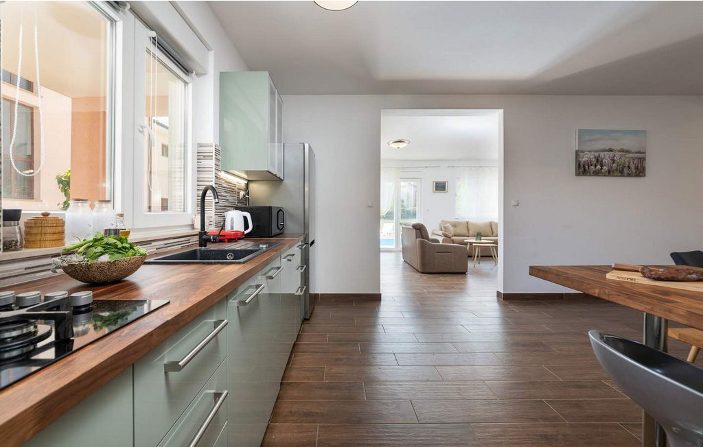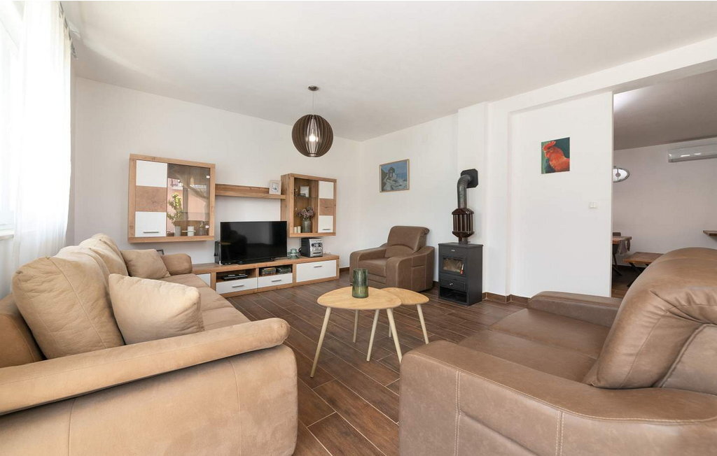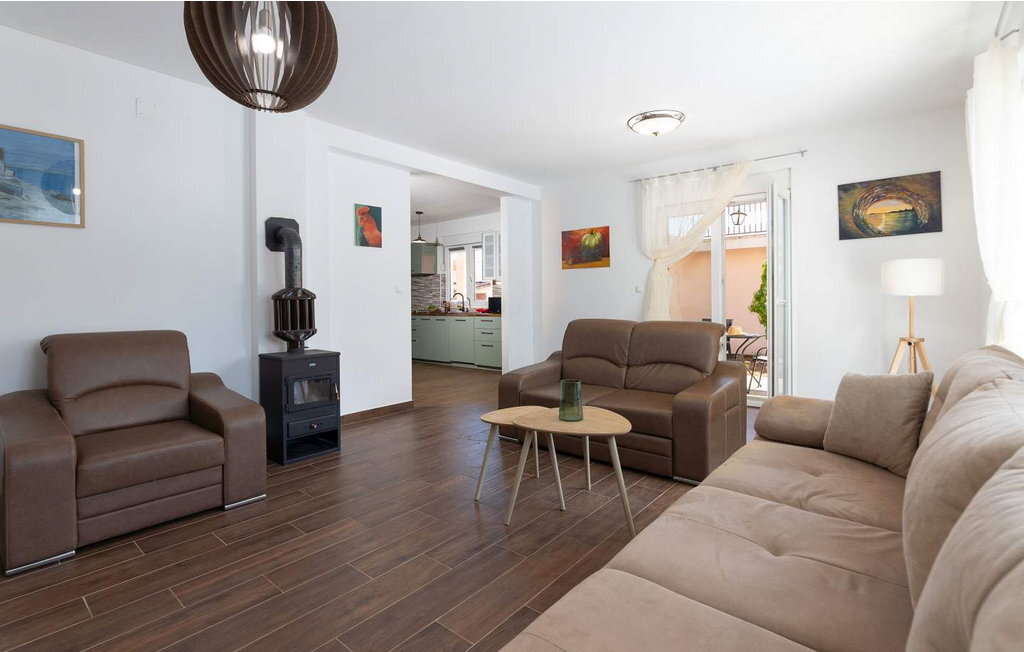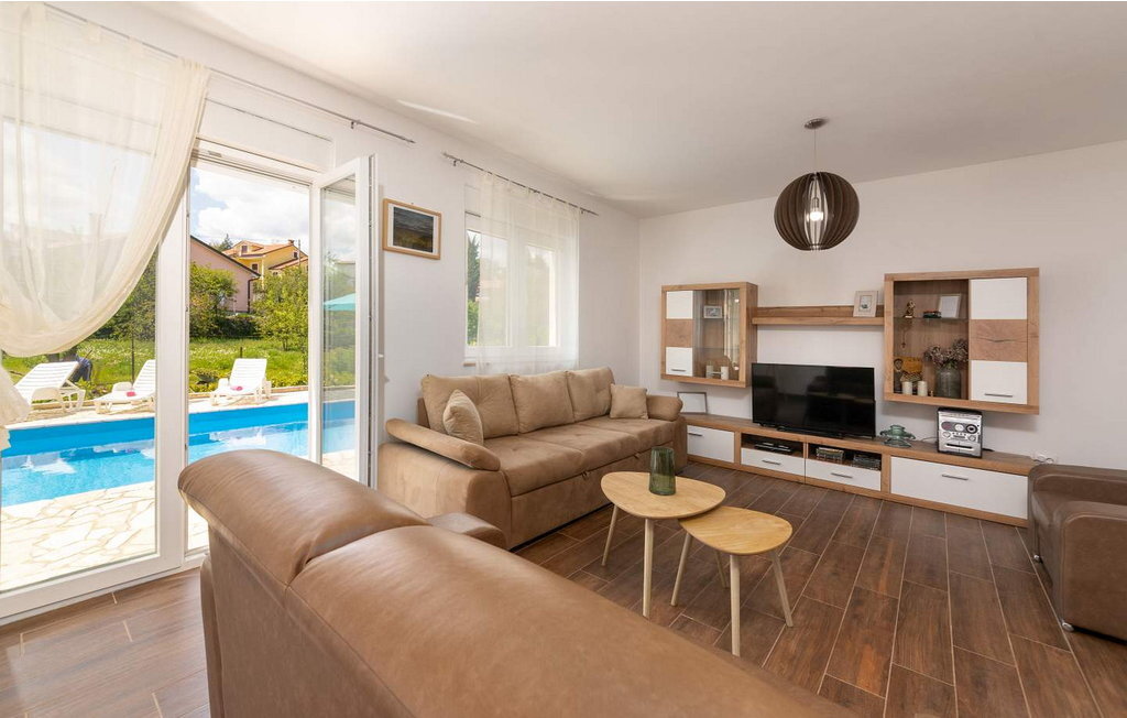 Dans le village de Matulji, il y a des magasins, des restaurants, une aire de jeux pour enfants et des cafés, et la plage la plus proche est à 4,5 km. L'emplacement est idéal pour des vacances actives et relaxantes, à quelques minutes du parc naturel d'Ucka avec ses nombreuses pistes cyclables et sentiers de randonnée, et de la perle de l'Adriatique Opatija avec ses belles promenades, ses cafés et restaurants très fréquentés. Sur un terrain de 600 m², il y a une piscine de 32 m², des chaises longues, une terrasse couverte avec table à manger, un barbecue et un parking pour trois voitures.