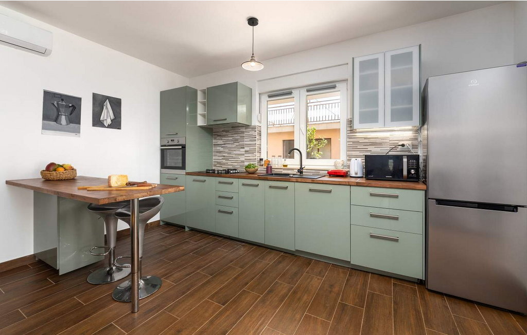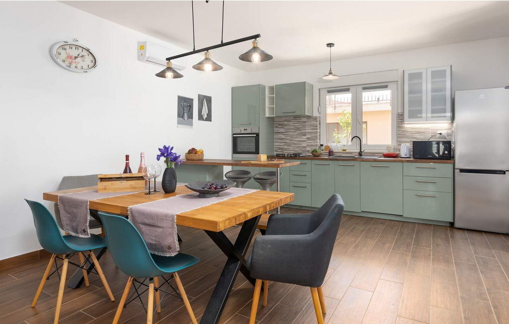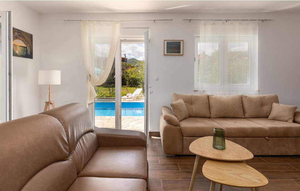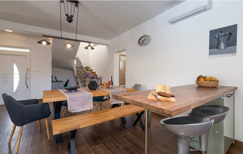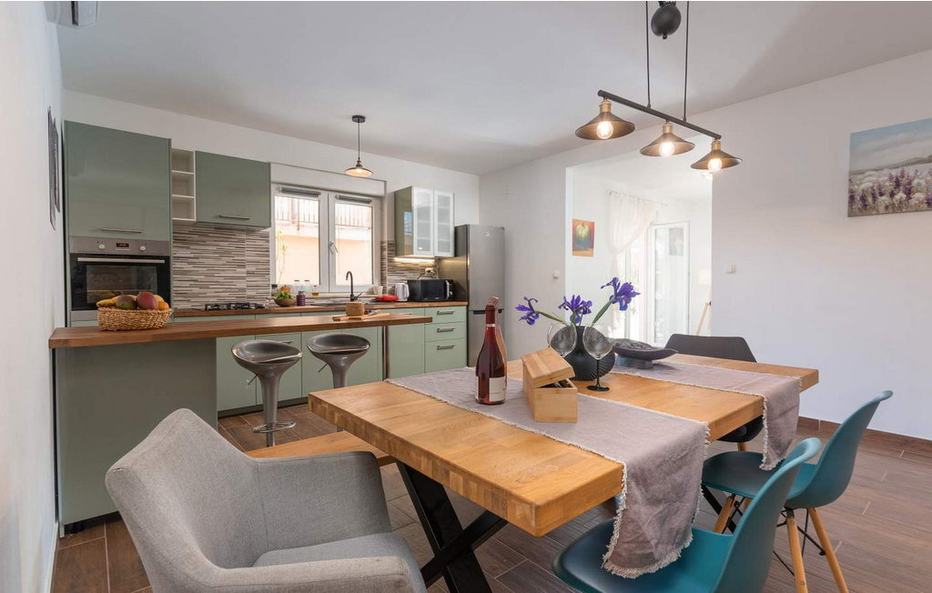 Dans le village de Matulji, il y a des magasins, des restaurants, une aire de jeux pour enfants et des cafés, et la plage la plus proche est à 4,5 km. L'emplacement est idéal pour des vacances actives et relaxantes, à quelques minutes du parc naturel d'Ucka avec ses nombreuses pistes cyclables et sentiers de randonnée, et de la perle de l'Adriatique Opatija avec ses belles promenades, ses cafés et restaurants très fréquentés. Sur un terrain de 600 m², il y a une piscine de 32 m², des chaises longues, une terrasse couverte avec table à manger, un barbecue et un parking pour trois voitures.