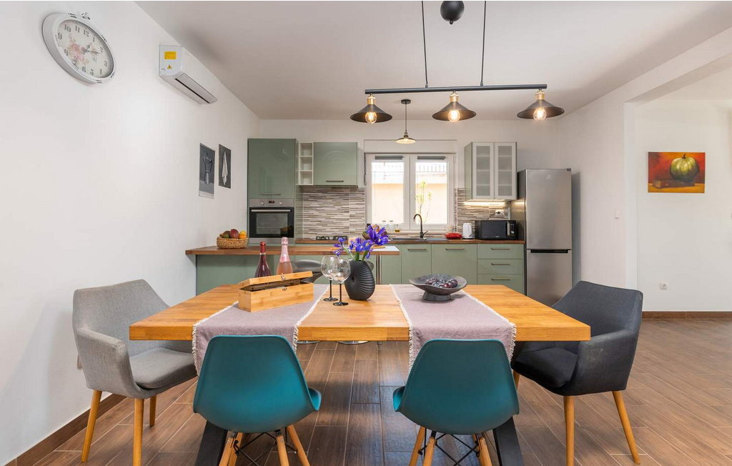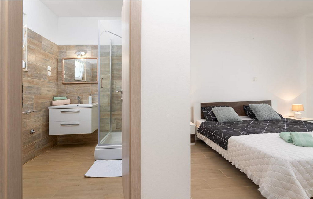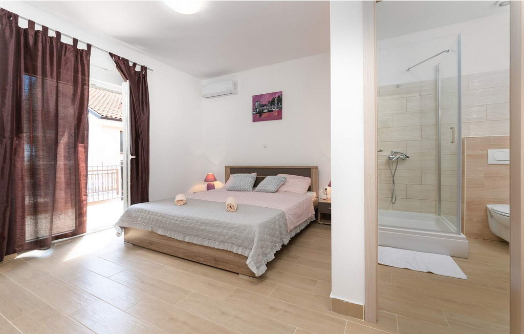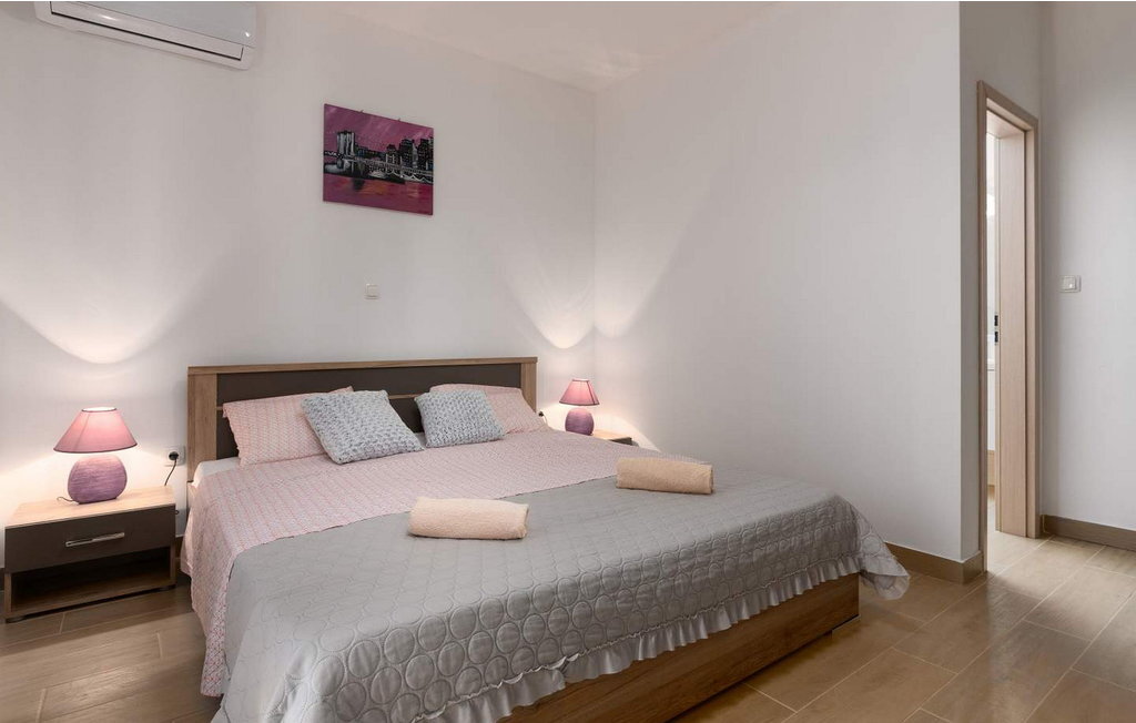La villa Slava a une surface habitable de 224 m² et s'étend sur deux étages. Au rez-de-chaussée, il y a un salon climatisé, une salle à manger et une cuisine entièrement équipée, des toilettes séparées dans le couloir, une chambre à coucher avec sa propre salle de bain et une sortie sur la terrasse. Au premier étage, il y a trois chambres à coucher, chacune avec climatisation, salle de bain privée et sortie sur le balcon. Veuillez noter que ce logement peut accepter des groupes de jeunes sur demande. Veuillez nous contacter pour le vérifier. Un groupe de jeunes dans ce logement se compose de personnes âgées de 26 ans ou moins. Si vous êtes un groupe de jeunes [ou si vous prévoyez un enterrement de vie de garçon], il se peut que l'on vous demande de payer une caution supplémentaire à votre arrivée. Tout montant nécessaire à la réparation des dommages causés à la propriété sera déduit de la caution.