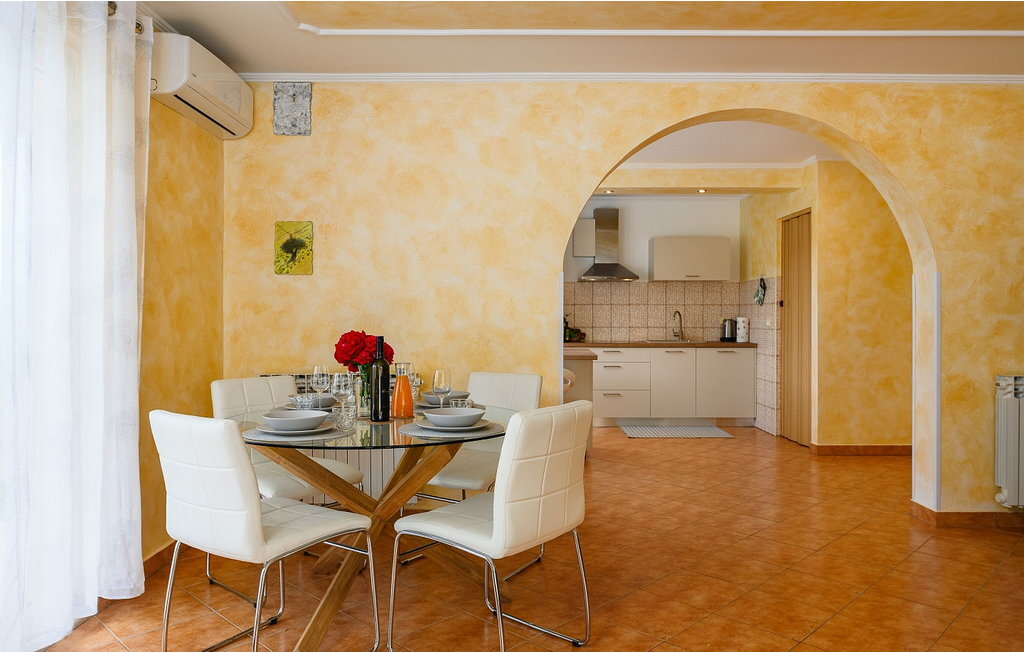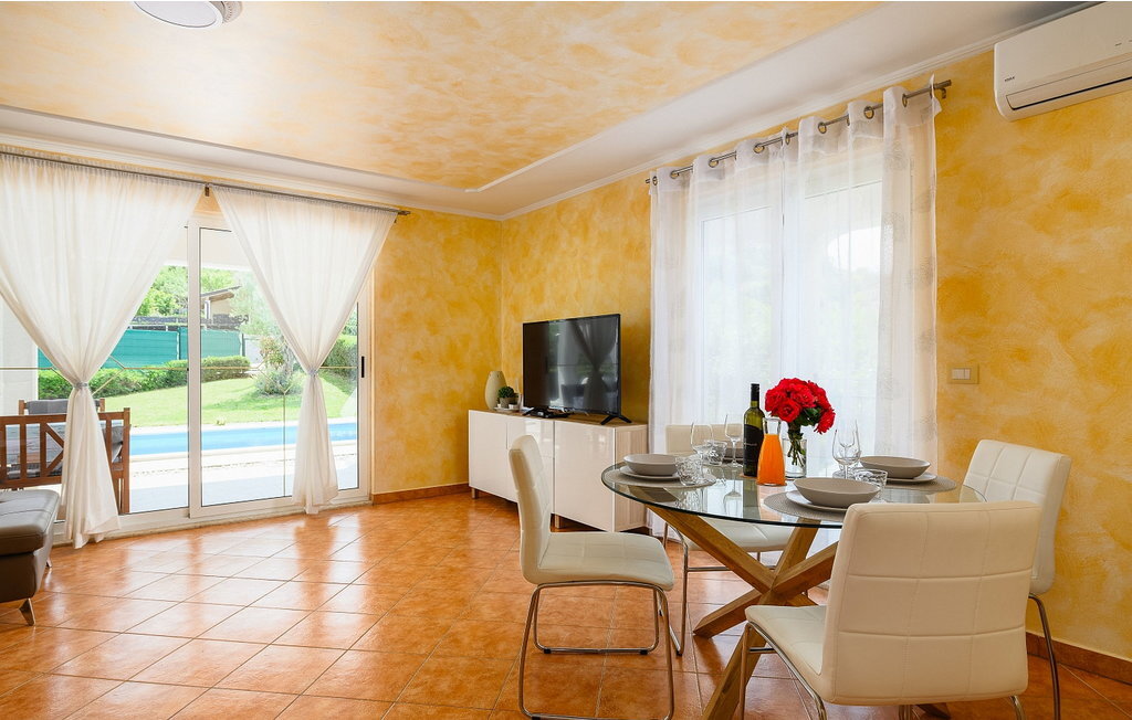 Casa Veranda est une charmante maison indépendante située en bordure du paisible village de Lazi, l'une des régions les plus vertes d'Istrie centrale. Entourée de vergers et de vignobles luxuriants, cette villa offre une vue panoramique époustouflante sur la pittoresque ville médiévale de Motovun. Le terrain est entièrement clôturé et dispose d'un bel espace extérieur avec une piscine, une pelouse bien entretenue et une terrasse couverte avec un coin repas en plein air et un barbecue. Deux places de parking sont également disponibles. À l'intérieur, Casa Veranda comprend un salon avec une cuisine bien équipée et un coin repas, un canapé-lit ainsi qu'une salle de douche et des toilettes séparées. Motovun, au cœur de l'Istrie, est connue pour son festival du film, sa source thermale et ses bâtiments historiques bien conservés. La situation centrale de la villa la rend idéale pour explorer les sites touristiques d'Istrie. Visitez les villes côtières de Pula, Rovinj et Porec ou profitez d'une excursion dans le parc national de Brijuni, connu pour ses magnifiques plages, ses terrains de golf et son zoo. Découvrez la cuisine istrienne dans les tavernes locales ou lancez-vous dans une aventure de recherche de truffes dans la forêt de Motovun.