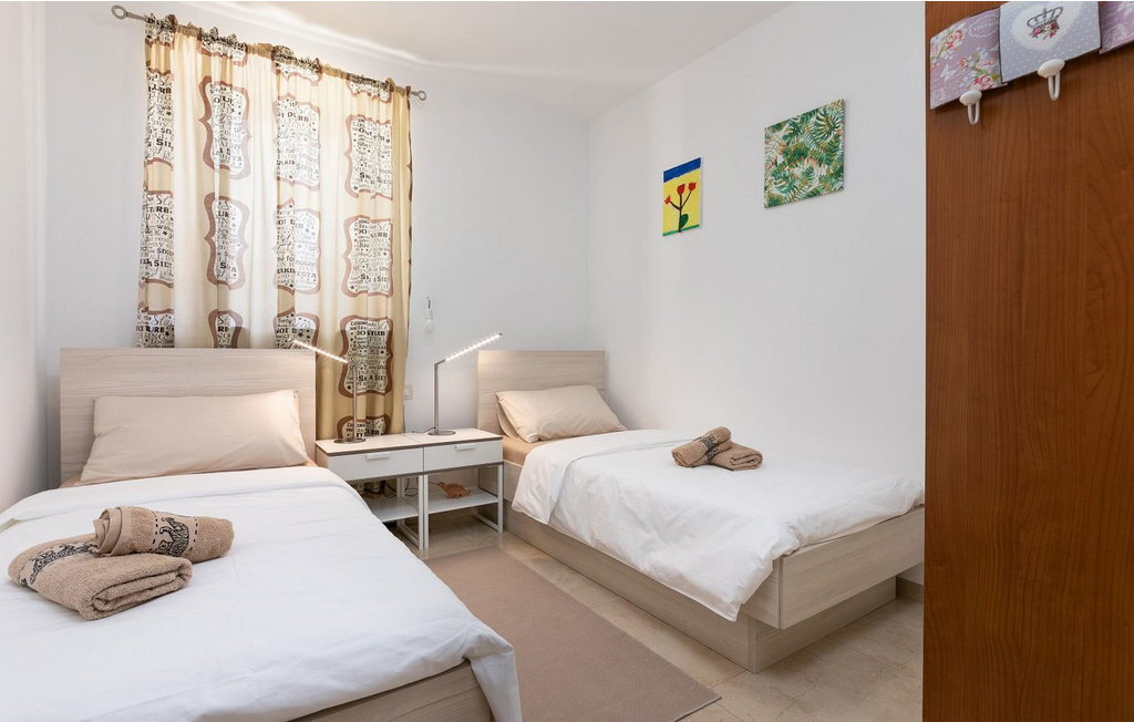 L'unité de logement au premier étage pour 3-5 personnes de 75 m² se compose d'un salon climatisé avec un canapé-lit pour une personne, d'une salle à manger, d'une cuisine entièrement équipée, d'une chambre à coucher avec un lit double, d'une chambre à coucher avec des lits superposés et d'une salle de bain avec une baignoire d'hydromassage. Veuillez noter que ce logement peut accepter des groupes de jeunes sur demande. Veuillez nous contacter pour le vérifier. Un groupe de jeunes dans ce logement se compose de personnes âgées de 26 ans ou moins. Si vous êtes un groupe de jeunes [ou si vous prévoyez un enterrement de vie de garçon], il se peut que l'on vous demande de payer une caution supplémentaire à votre arrivée. Tout montant nécessaire à la réparation des dommages causés à la propriété sera déduit de la caution.