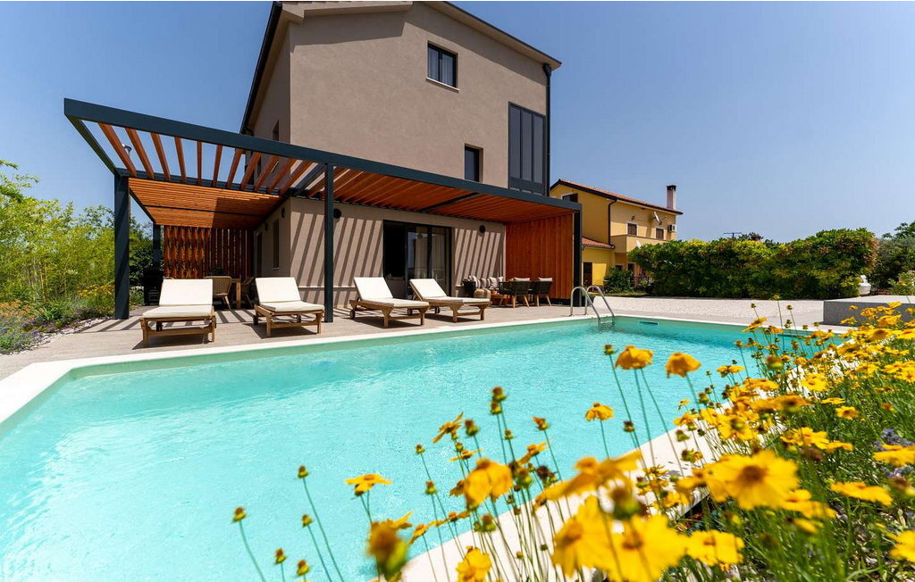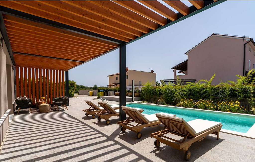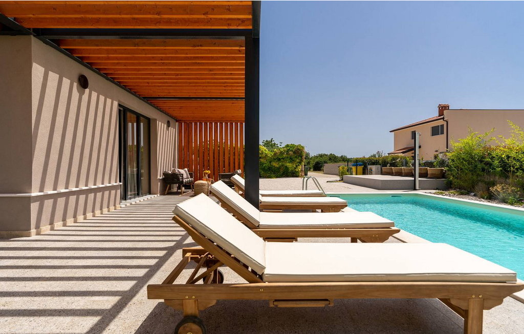 Villa Balzarini, maison de vacances moderne pour 6 personnes avec piscine, située à 1 km de la mer et à 7 km de la ville de Porec.