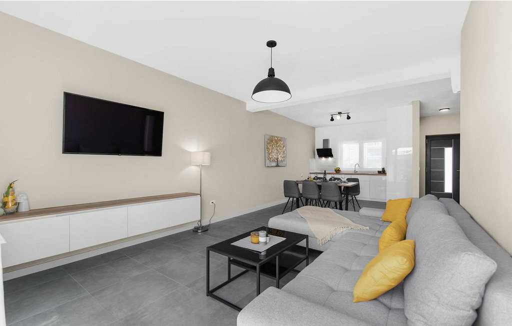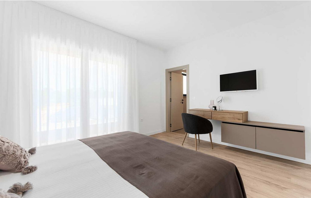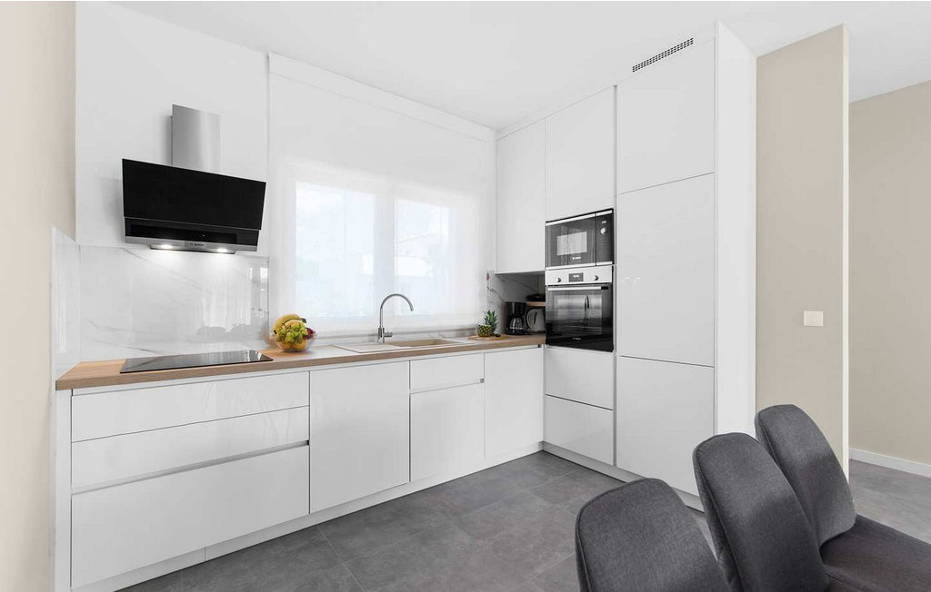 À proximité de la maison se trouvent des centres commerciaux, des distributeurs de billets, des stations-service, des cafés, des restaurants, des terrains de tennis et de volley-ball, de belles plages. Sur un terrain clôturé de 160 m², les hôtes ont à leur disposition une piscine de 32 m², des chaises longues, une table pour les repas, un barbecue, un parasol et deux places de parking.