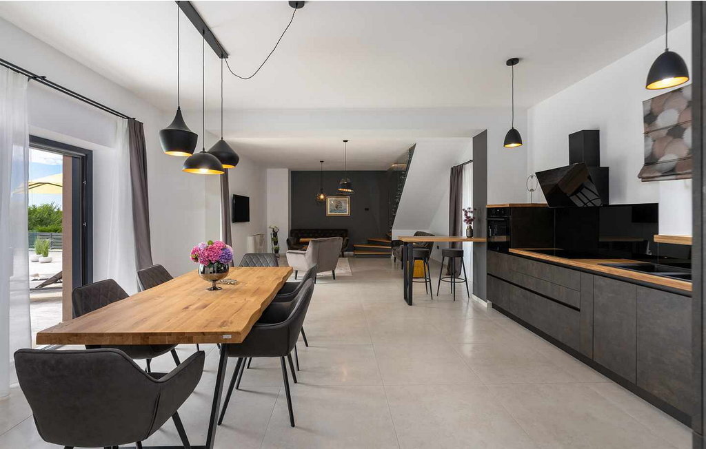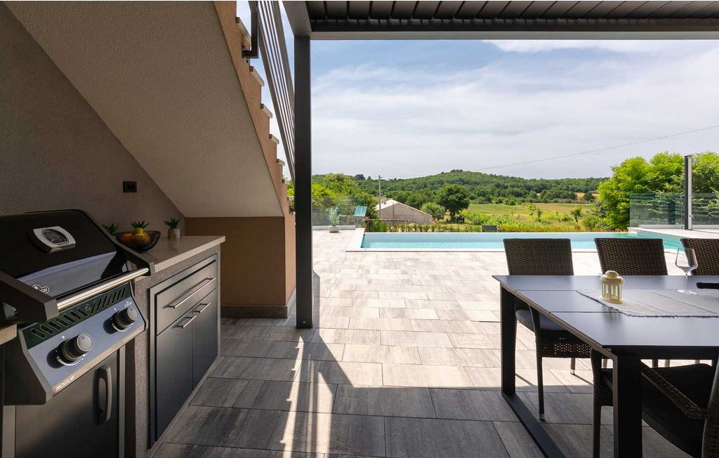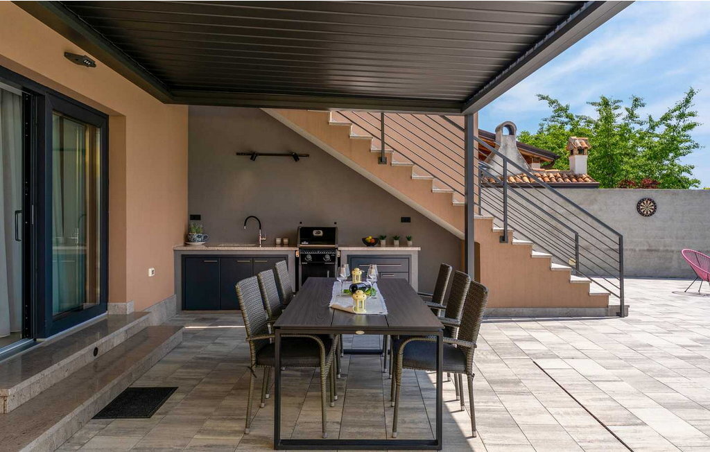 Bienvenue dans l'impressionnante villa Sunnyside, située en bordure du village idyllique de Dracevac. Cette maison de vacances moderne combine le confort contemporain avec une touche d'histoire, créant ainsi une atmosphère unique. La cave à vin somptueusement aménagée, issue d'une ancienne citerne, confère au logement son charme particulier. Sur le terrain privé, vous profitez du calme et de la détente. Plongez dans la piscine à débordement, bronzez sur la vaste surface de bronzage ou passez des moments conviviaux autour du barbecue. L'espace repas en plein air vous invite à passer des soirées gastronomiques sous le ciel étoilé d'Istrie.