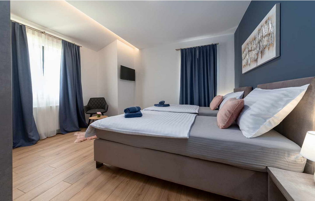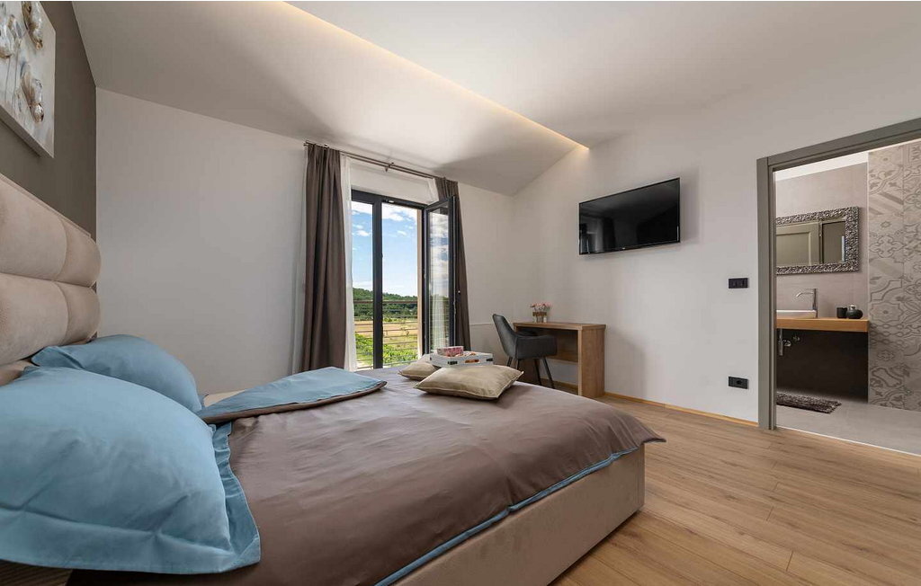 À une courte distance en voiture, Porec vous attend avec sa riche histoire et sa diversité culturelle. Explorez la vieille ville avec la célèbre basilique d'Euphrasius, un site du patrimoine mondial de l'UNESCO, ou flânez le long de la pittoresque promenade du bord de mer. Profitez des plages et goûtez aux spécialités locales dans les nombreux restaurants. Les environs offrent également de nombreuses pistes cyclables et sentiers de randonnée ainsi que des vignobles qui invitent à la dégustation. Les plus aventureux pourront faire une excursion d'une journée à Rovinj, non loin de là, ou dans la grotte de Baredine.