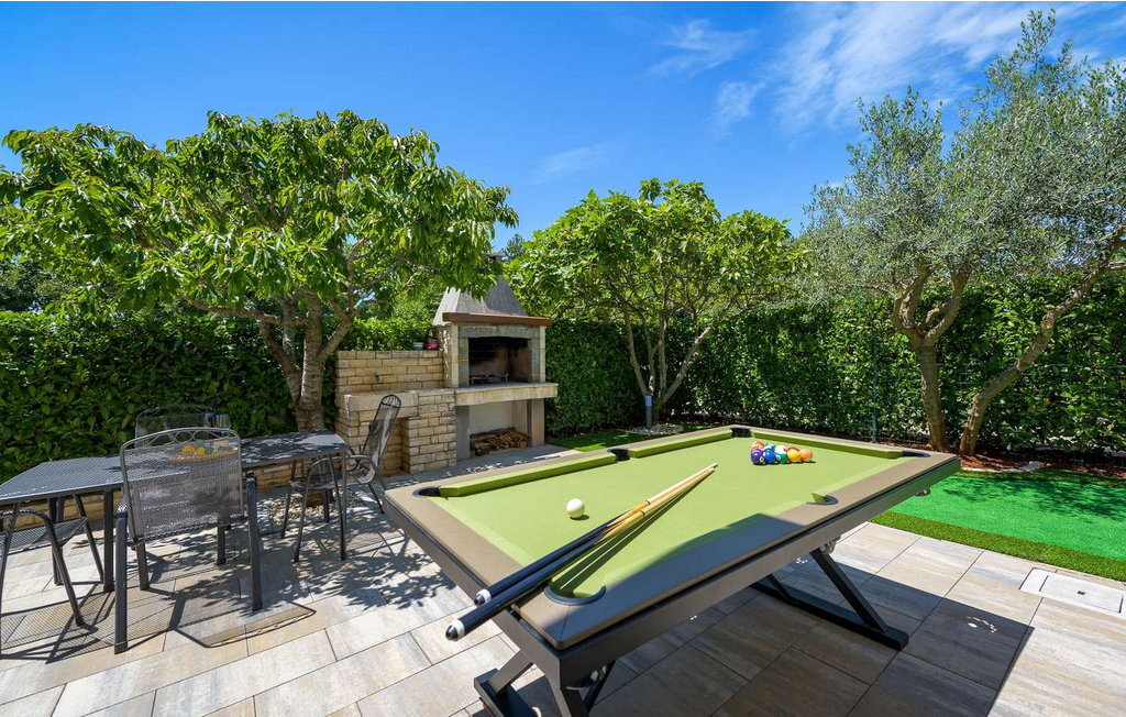 Les amateurs de gastronomie trouveront à quelques kilomètres d'excellents restaurants et konoben (tavernes typiques d'Istrie), des viticulteurs et des producteurs d'huile d'olive. Pour les sportifs, Murine est un bon point de départ pour les sports nautiques, les courts de tennis, le stade ATP, le terrain de golf et la piste cyclable et de randonnée Parenzana. Sur son propre terrain, partiellement clôturé, la House Katti offre une piscine, une terrasse couverte avec meubles de jardin, barbecue et salon de jardin, un parking pour deux véhicules.