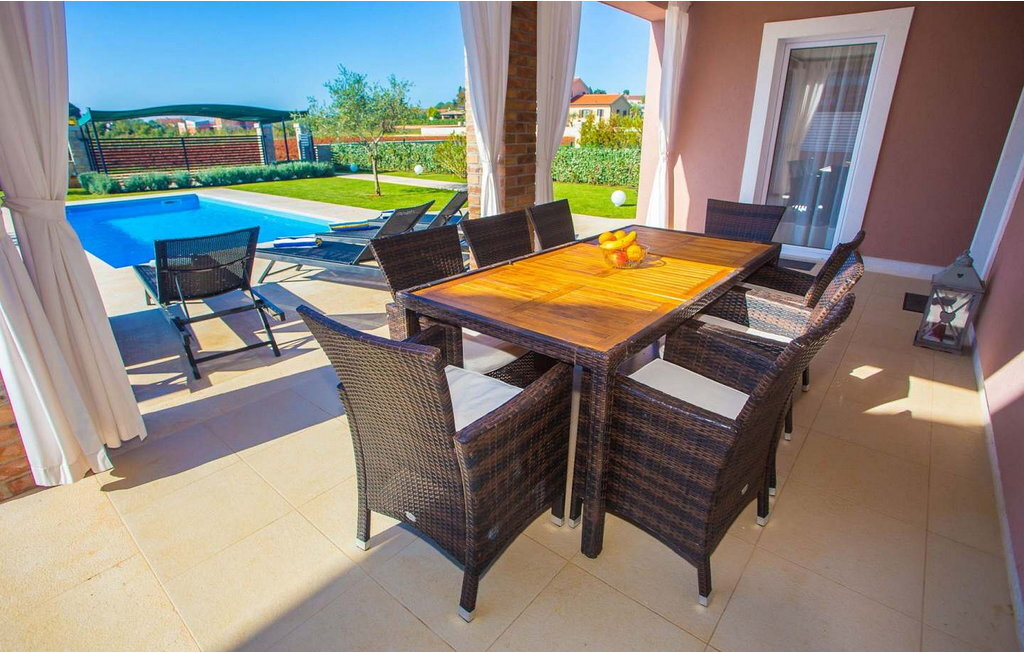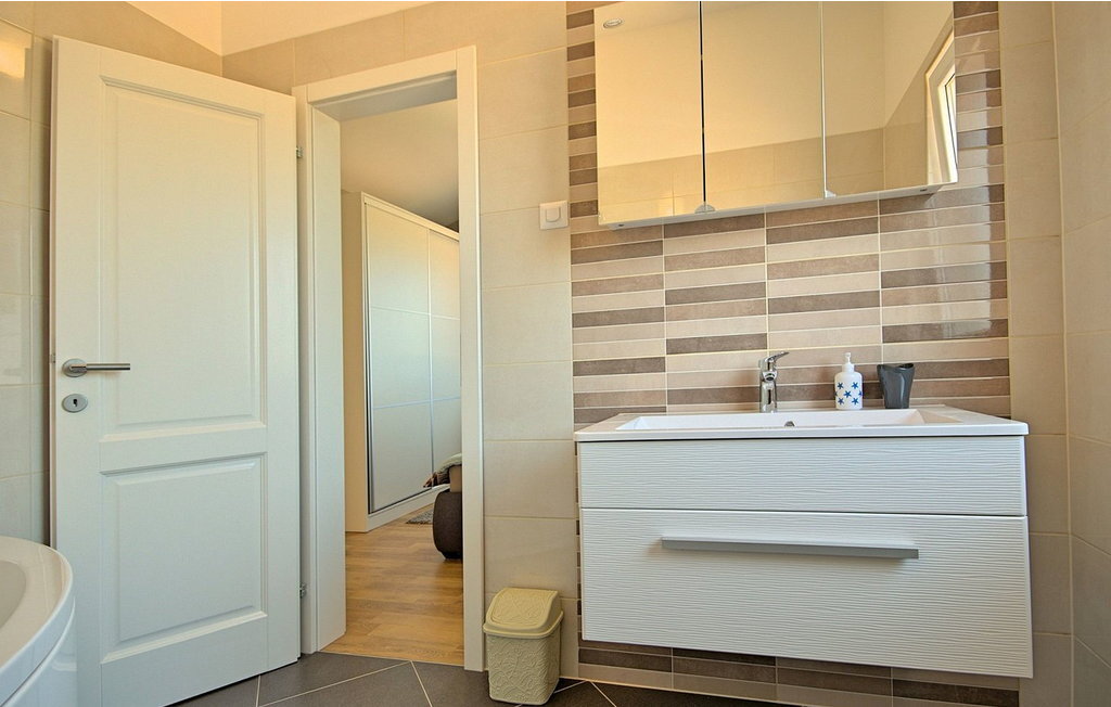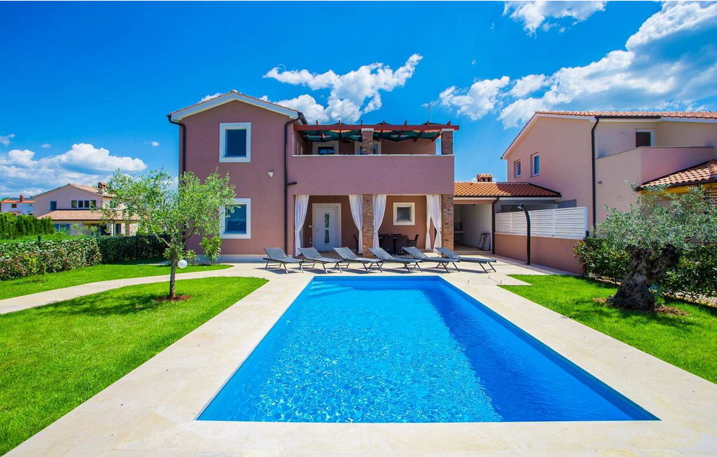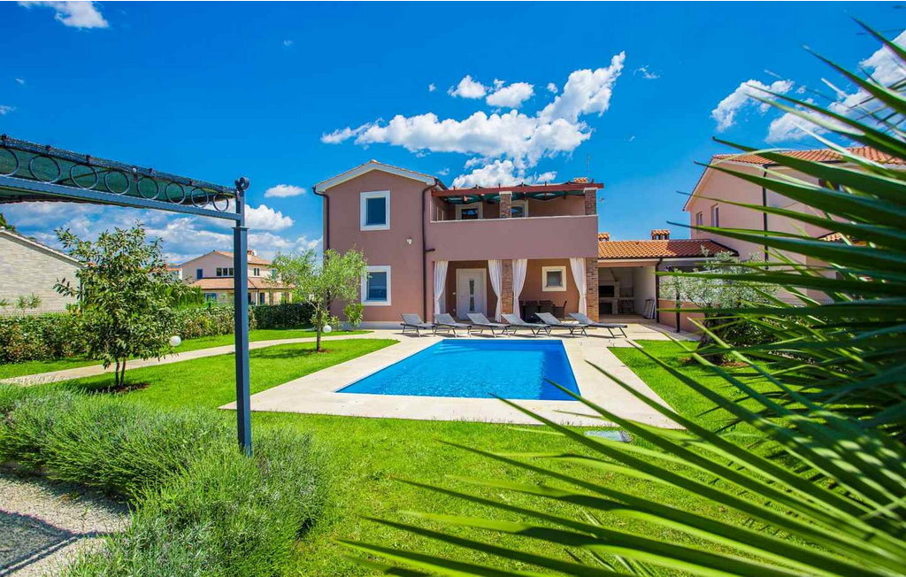 Bienvenue à la Villa Mariella, une résidence de vacances récemment construite avec une piscine étincelante, située à la périphérie paisible de la charmante ville de Katelir. À seulement 11 kilomètres de la ville animée de Pore et à 10 kilomètres des magnifiques plages de la station balnéaire de Lanterna, cette villa est parfaitement située pour tous ceux qui souhaitent explorer le meilleur de l'Istrie. Construite en 2016, la villa Mariella offre un merveilleux mélange de confort moderne et de plaisirs en plein air. Sur le terrain clôturé de 800 m², les hôtes peuvent se détendre sur la terrasse couverte avec une table à manger pour 8 personnes, savourer des repas préparés sur le barbecue et se détendre au bord de la piscine. Les familles apprécieront l'aire de jeux pour enfants et il y a deux places de parking couvertes pour votre confort. Katelir est connu pour ses excellents restaurants, pizzerias, bars et magasins, ce qui en fait un merveilleux point de départ pour vos vacances. La situation pittoresque et l'hospitalité chaleureuse de la ville ajoutent à son charme et offrent le cadre parfait pour un séjour inoubliable. La Villa Mariella est entièrement climatisée et conçue de manière à offrir une expérience confortable et relaxante et à faire en sorte que vos vacances en Istrie soient vraiment spéciales. Veuillez noter que ce logement n'accepte pas les groupes de jeunes ou les enterrements de vie de garçon. Un groupe de jeunes dans ce logement se compose de personnes âgées de 26 ans ou moins.