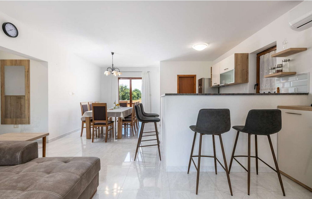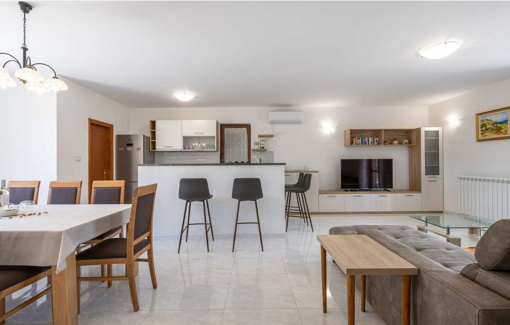 La localité touristique de Rabac, avec ses plages et son offre gastronomique et sportive variée, se trouve à 12 km. Sur un terrain entièrement clôturé, elle offre à ses hôtes deux terrasses, des chaises longues, un barbecue, un ensemble de sièges, un filet de badminton/volley-ball et plusieurs places de parking.