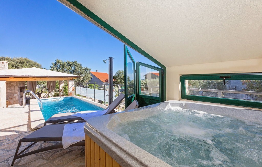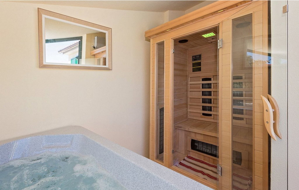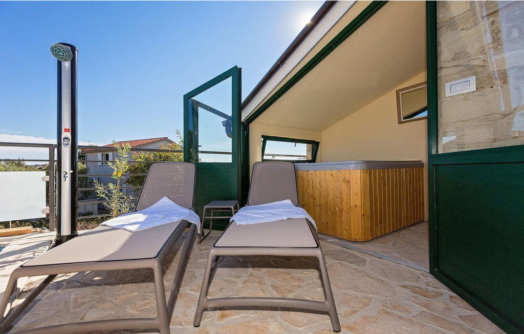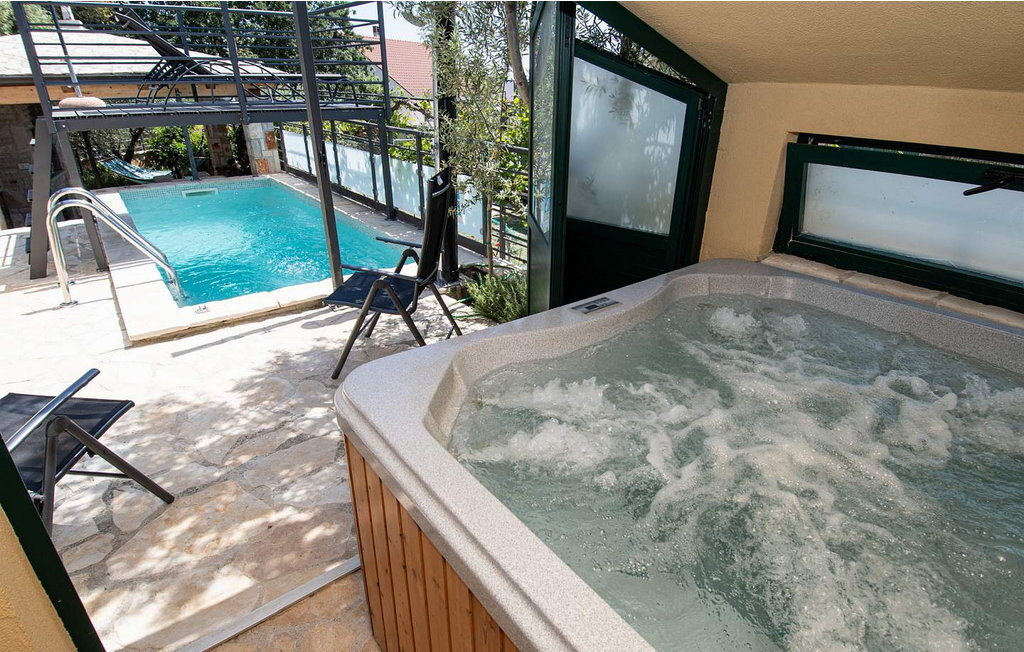 La maison de vacances est équipée pour 2-4 personnes et dispose d'une piscine avec système de nage à contre-courant, d'un jacuzzi, d'une cabine infrarouge et d'une terrasse couverte avec cheminée pour barbecue et toilettes séparées, tout ce qui est nécessaire pour des vacances reposantes.