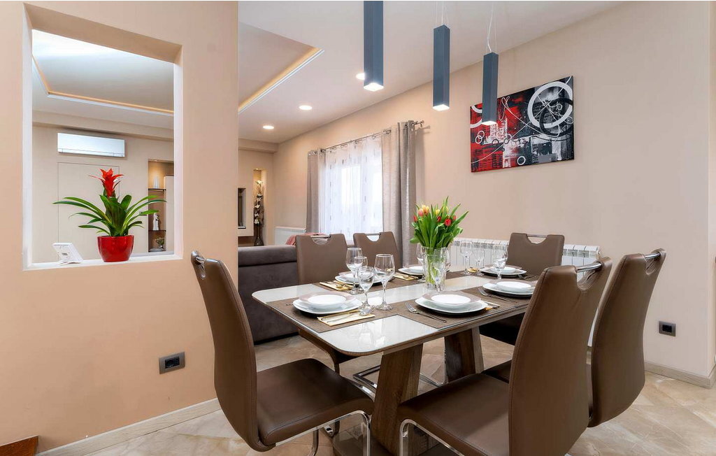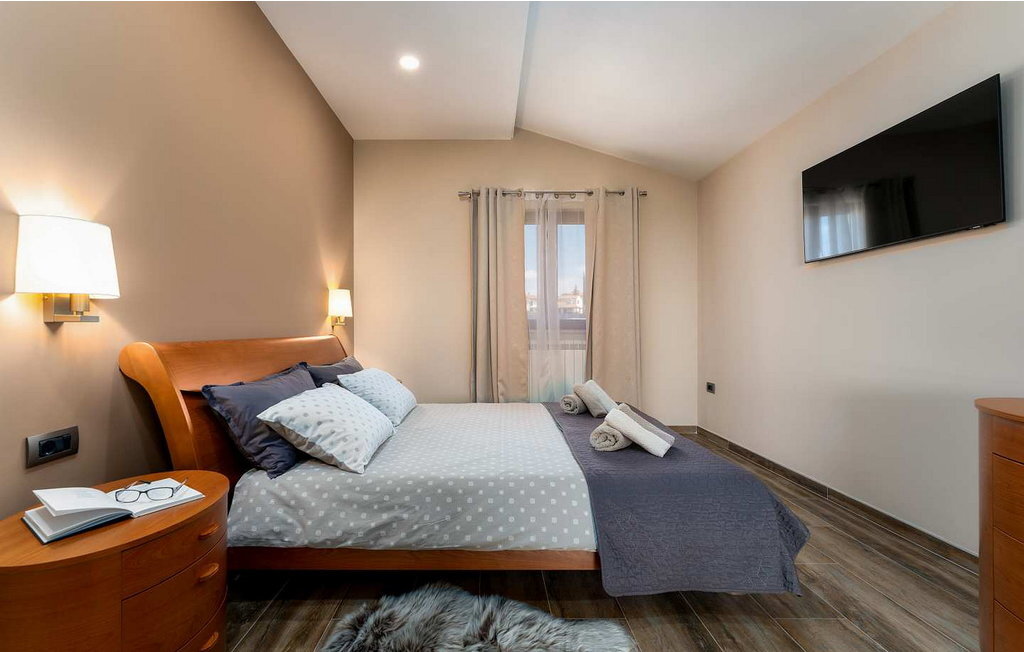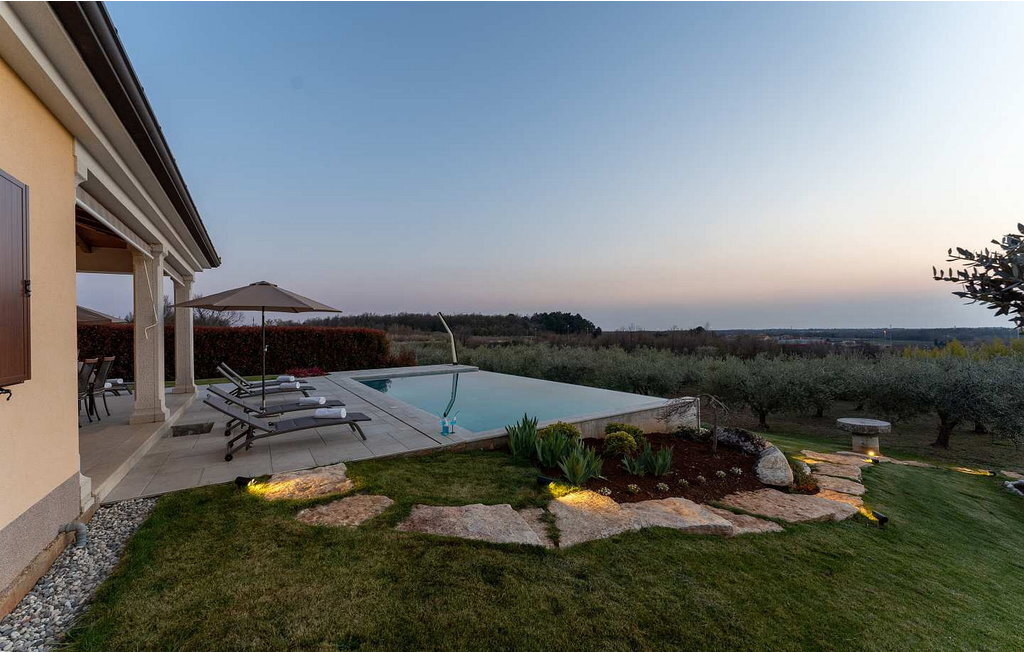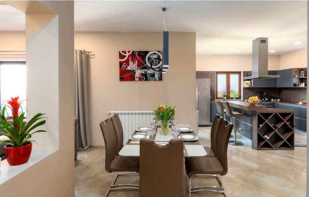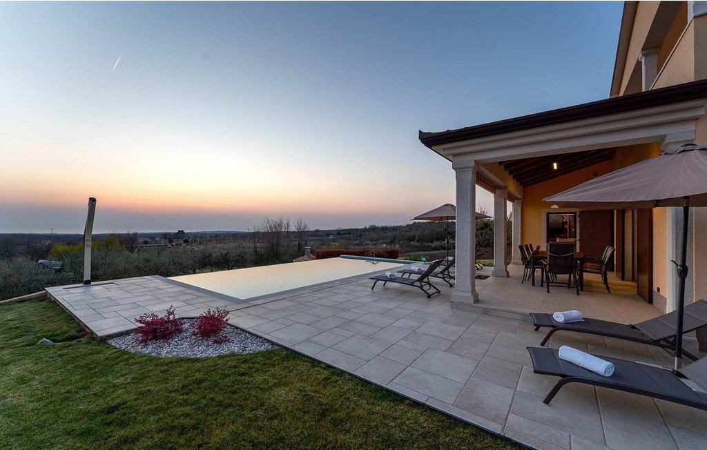 Cette maison spacieuse se trouve à quelques minutes en voiture de Vi?njan, où l'on trouve un magasin, du pain frais dans une boulangerie voisine et l'une des meilleures tavernes proposant des spécialités istriennes. Dans le jardin de 600 m², les hôtes ont à leur disposition une piscine à débordement, 6 chaises longues, un parasol, une terrasse couverte avec table à manger et vue sur l'oliveraie, un barbecue et deux places de parking.