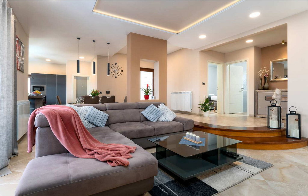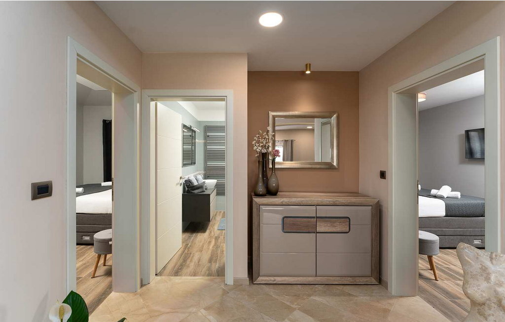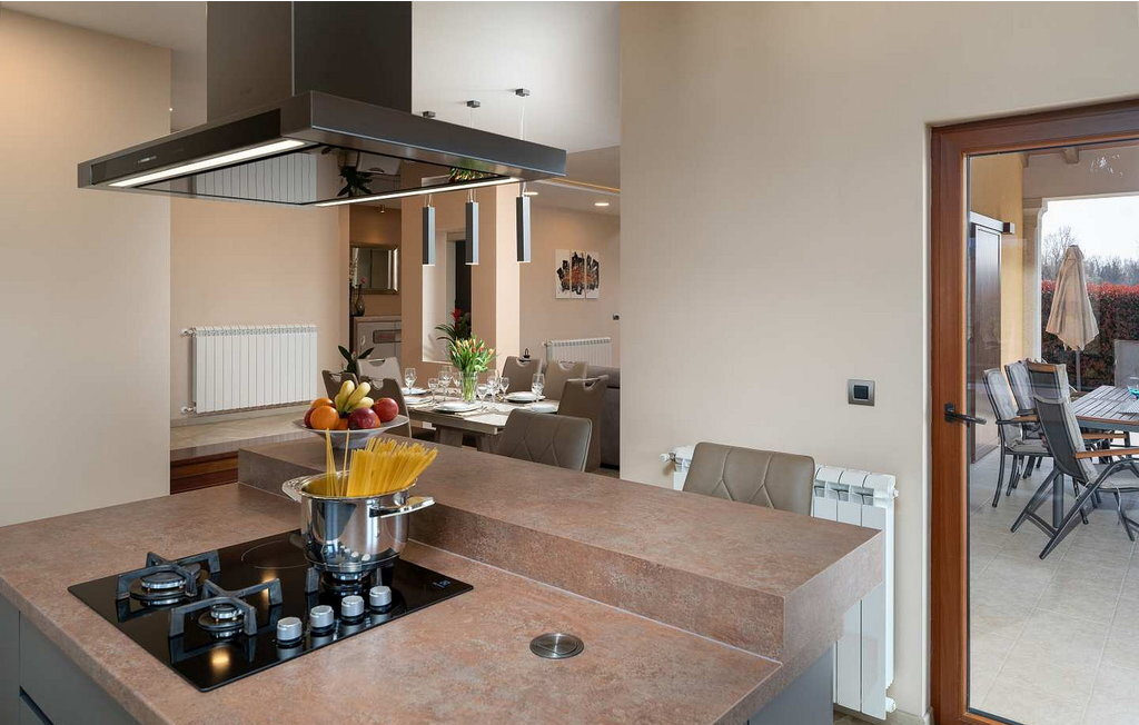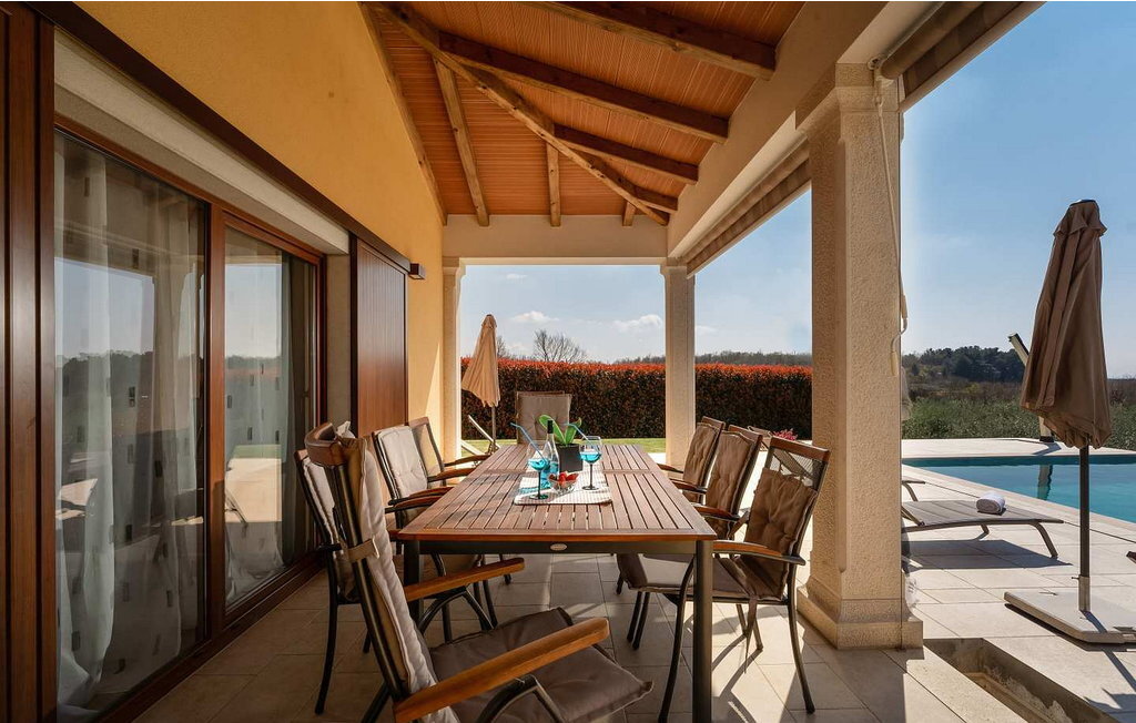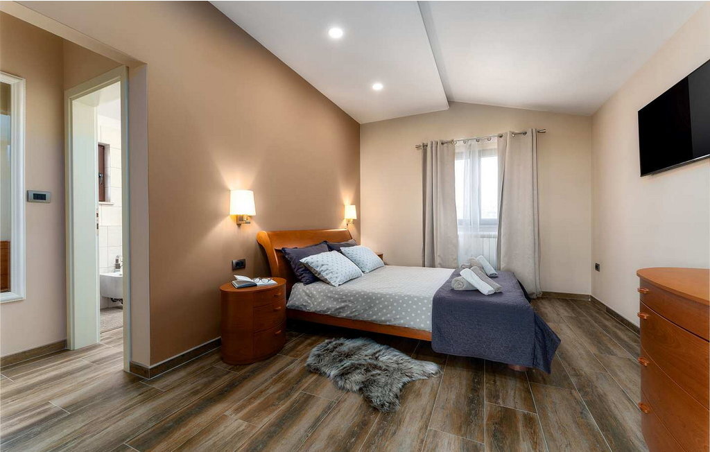Cette maison spacieuse se trouve à quelques minutes en voiture de Vi?njan, où l'on trouve un magasin, du pain frais dans une boulangerie voisine et l'une des meilleures tavernes proposant des spécialités istriennes. Dans le jardin de 600 m², les hôtes ont à leur disposition une piscine à débordement, 6 chaises longues, un parasol, une terrasse couverte avec table à manger et vue sur l'oliveraie, un barbecue et deux places de parking.