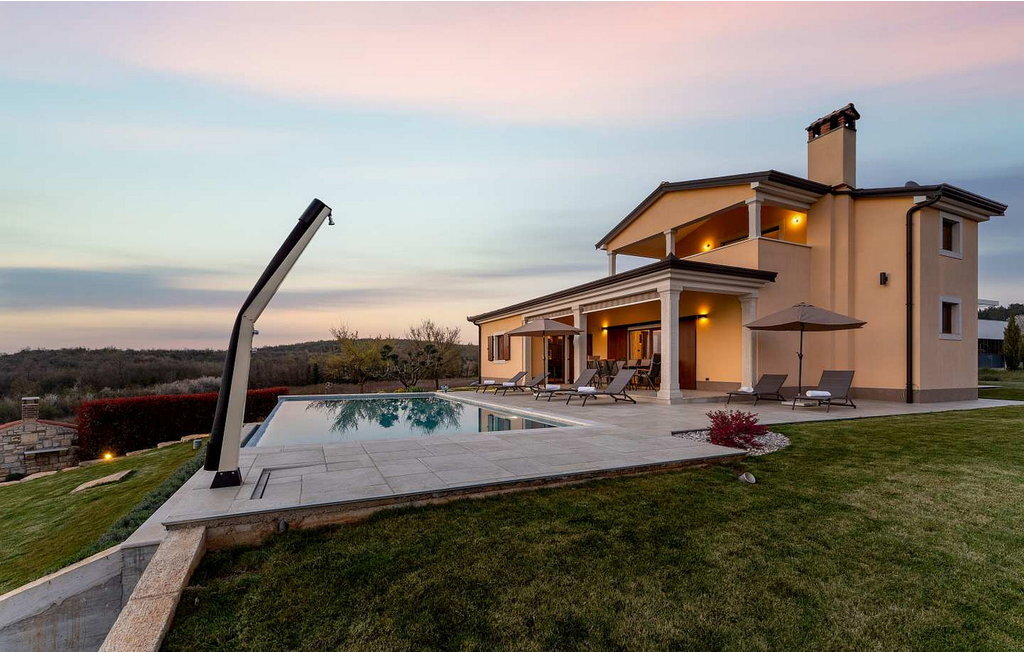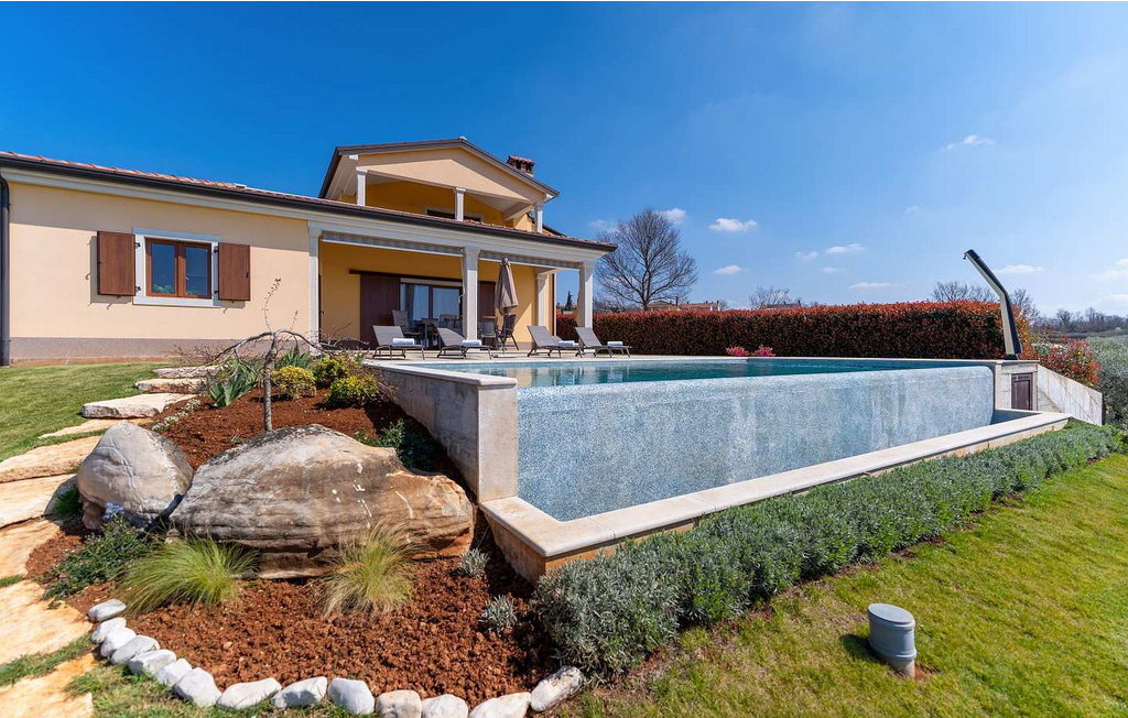 Maison de vacances Kadore, une belle maison avec une piscine à débordement, non loin de la ville de Porec et de la plage.