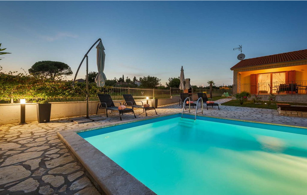 La construction a débuté en 2007 et la maison a été entièrement équipée en 2016. La villa est située sur son propre terrain de 776 m² et offre à ses hôtes une piscine ouverte de 32 m², des chaises longues et des parasols, une aire de jeux pour enfants et deux places de parking.