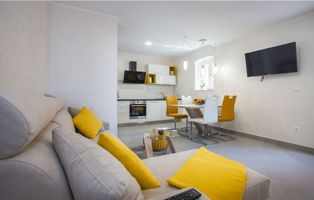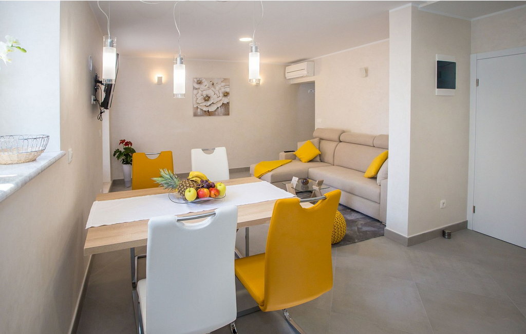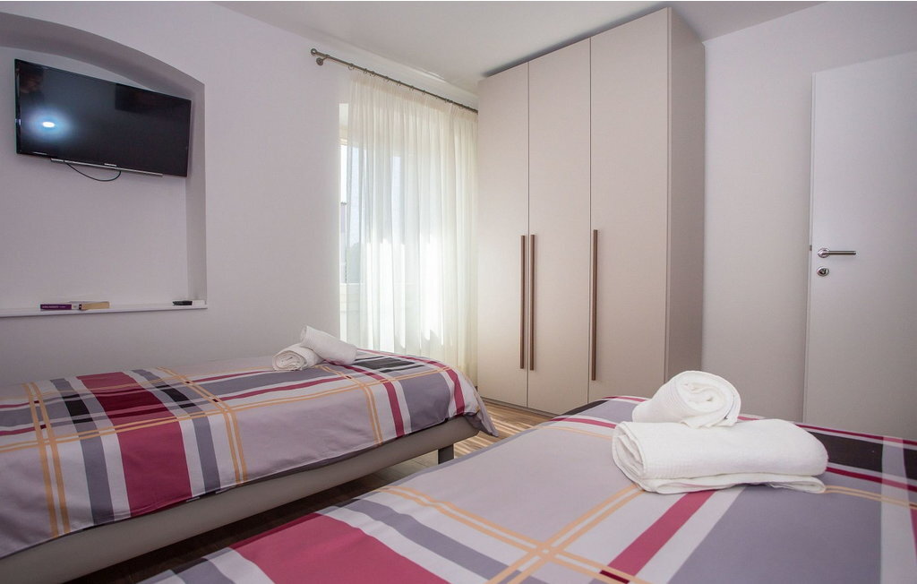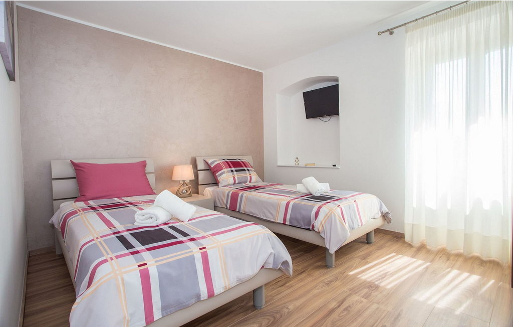 Maison de vacances près de Porec de 70 m² sur deux étages entièrement climatisés. Au rez-de-chaussée, il y a un beau salon avec un canapé, une cuisine équipée et une table à manger, une douche/WC et un petit garde-manger. Au premier étage, il y a deux chambres à coucher, l'une avec un lit double et l'autre avec deux lits simples, une douche/WC dans le couloir. Veuillez noter que ce logement peut accepter des groupes de jeunes sur demande. Veuillez nous contacter pour le vérifier. Un groupe de jeunes dans ce logement se compose de personnes âgées de 26 ans ou moins. Si vous êtes un groupe de jeunes [ou si vous prévoyez un enterrement de vie de garçon], il se peut que l'on vous demande de payer une caution supplémentaire à votre arrivée. Tout montant nécessaire à la réparation des dommages causés à la propriété sera déduit de la caution.