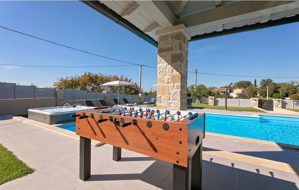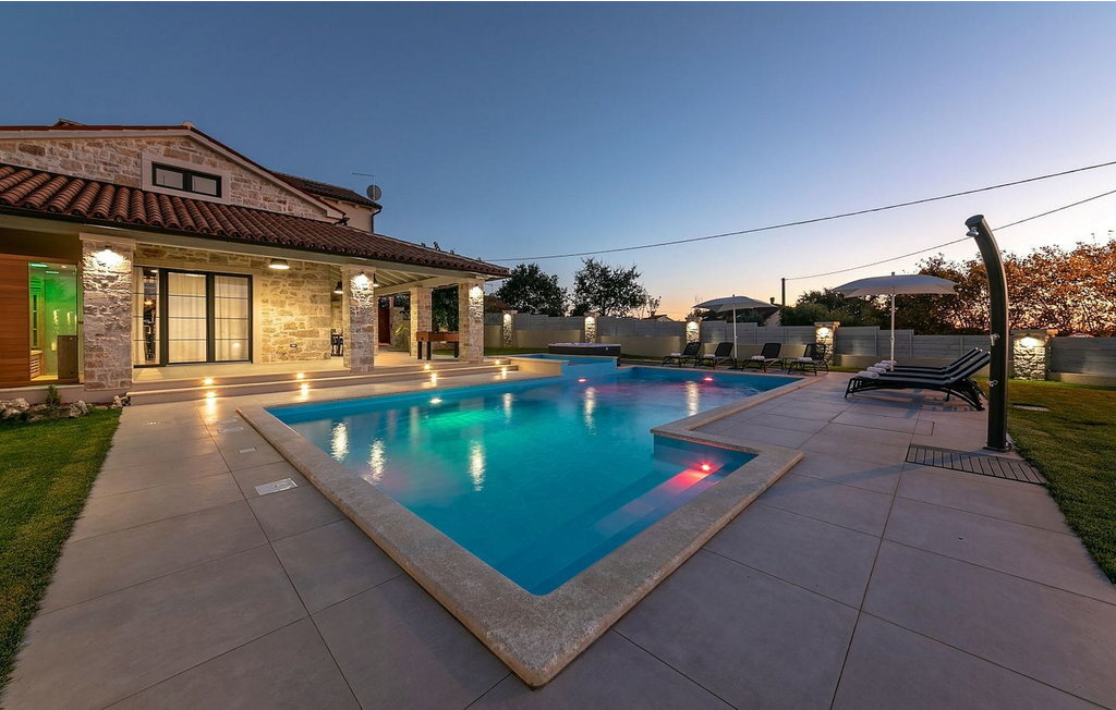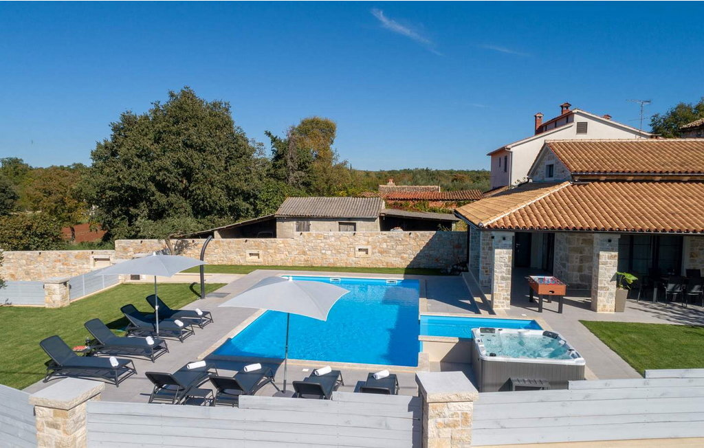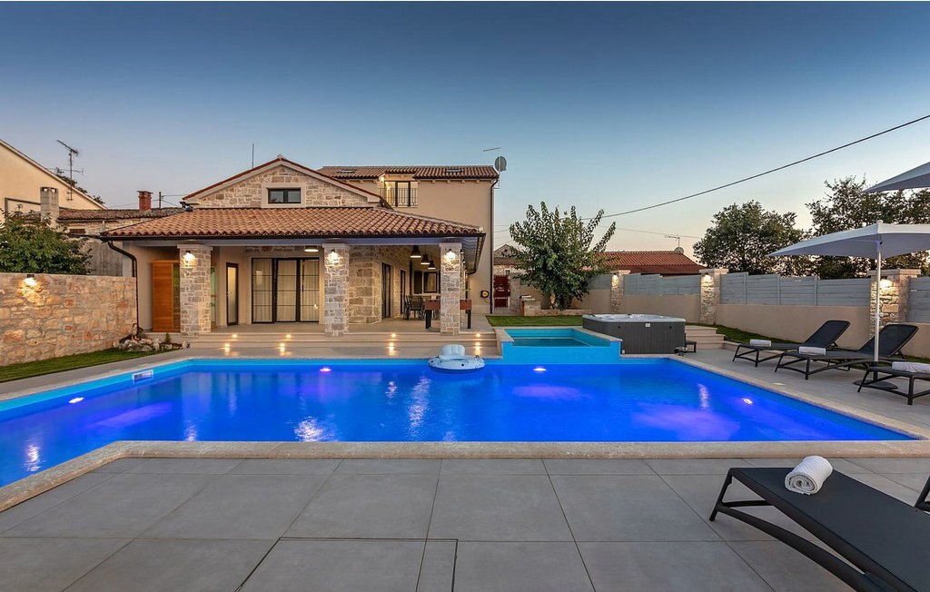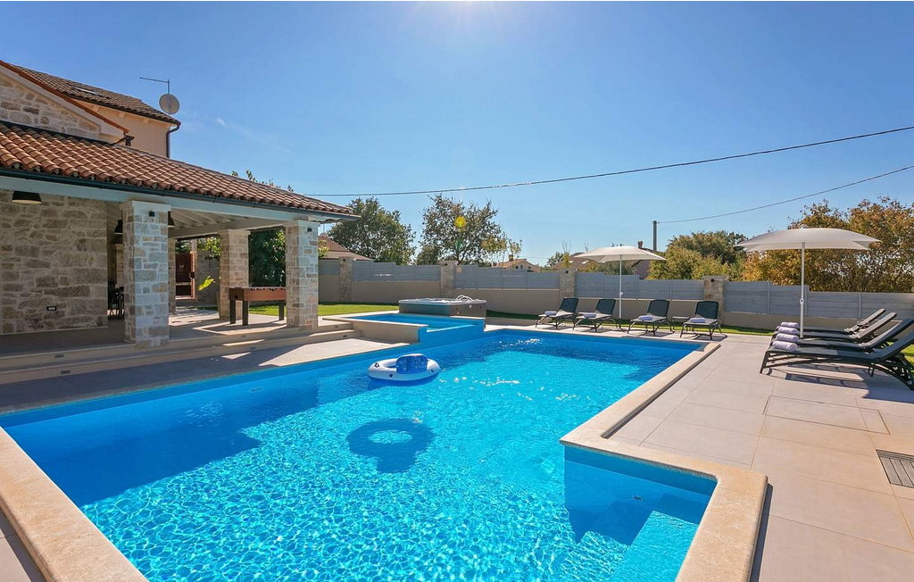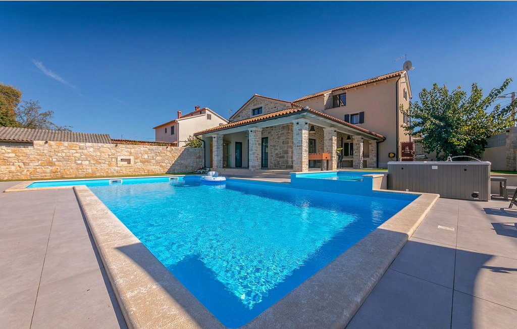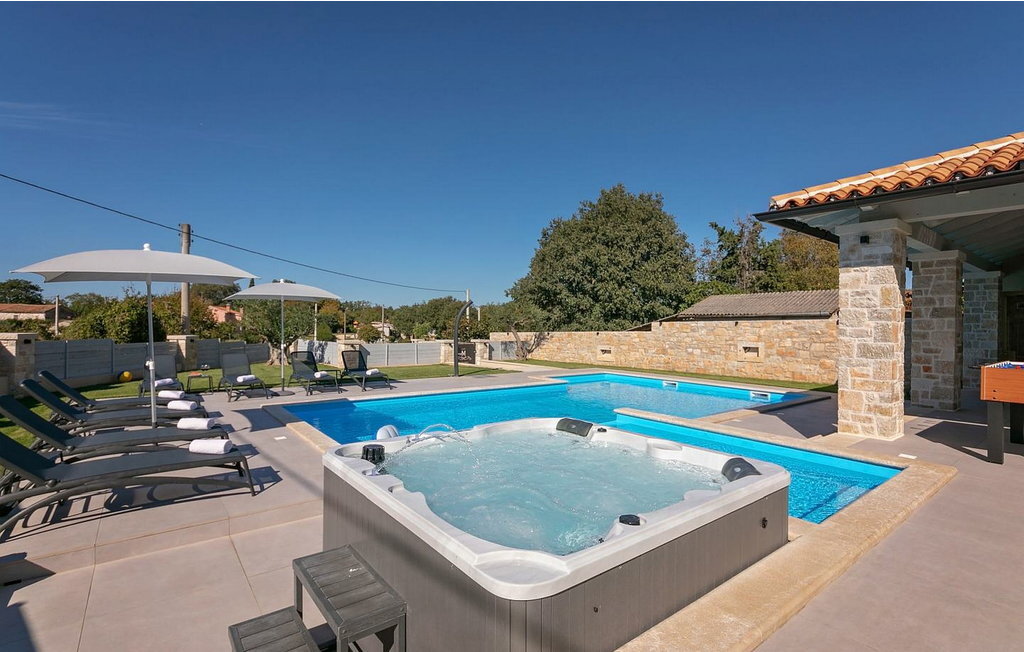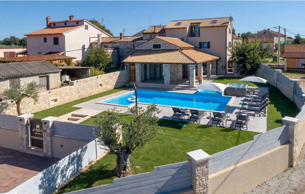 La Villa M est une maison de vacances luxueuse et magnifiquement aménagée, qui allie style moderne et charme traditionnel. Située à seulement 650 m du restaurant le plus proche et à 2 km d'une épicerie, cette villa offre un confort et une commodité ultimes. La villa est située sur un terrain entièrement clôturé et dispose d'une grande piscine, d'une pataugeoire de 6 m², d'un jacuzzi et d'un sauna. Profitez des repas en plein air sur la terrasse couverte avec table à manger et barbecue. Les autres commodités comprennent des toilettes pour les invités et trois places de parking. La villa est répartie sur trois étages climatisés. Le rez-de-chaussée comprend une salle de séjour élégante, une table à manger, une cuisine entièrement équipée et une chambre double avec salle de bains privative. Le premier étage dispose de deux chambres doubles, chacune avec sa propre douche/toilette. Le deuxième étage (mansarde) offre une chambre double, une salle de bain avec baignoire et douche séparée, un débarras avec machine à laver et un balcon avec vue panoramique sur la mer. La Villa M est située à Mihelii, à seulement 6 km de Porec et 7 km de la plage la plus proche. Elle offre un emplacement idéal pour explorer le riche patrimoine culturel de Porec, dont la célèbre basilique d'Euphrasie. Veuillez noter que les groupes de jeunes et les enterrements de vie de garçon ne sont pas acceptés dans ce logement. Un groupe de jeunes dans ce logement se compose de personnes âgées de 26 ans ou moins.