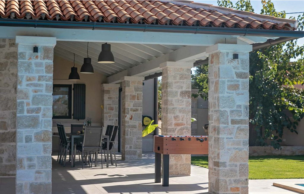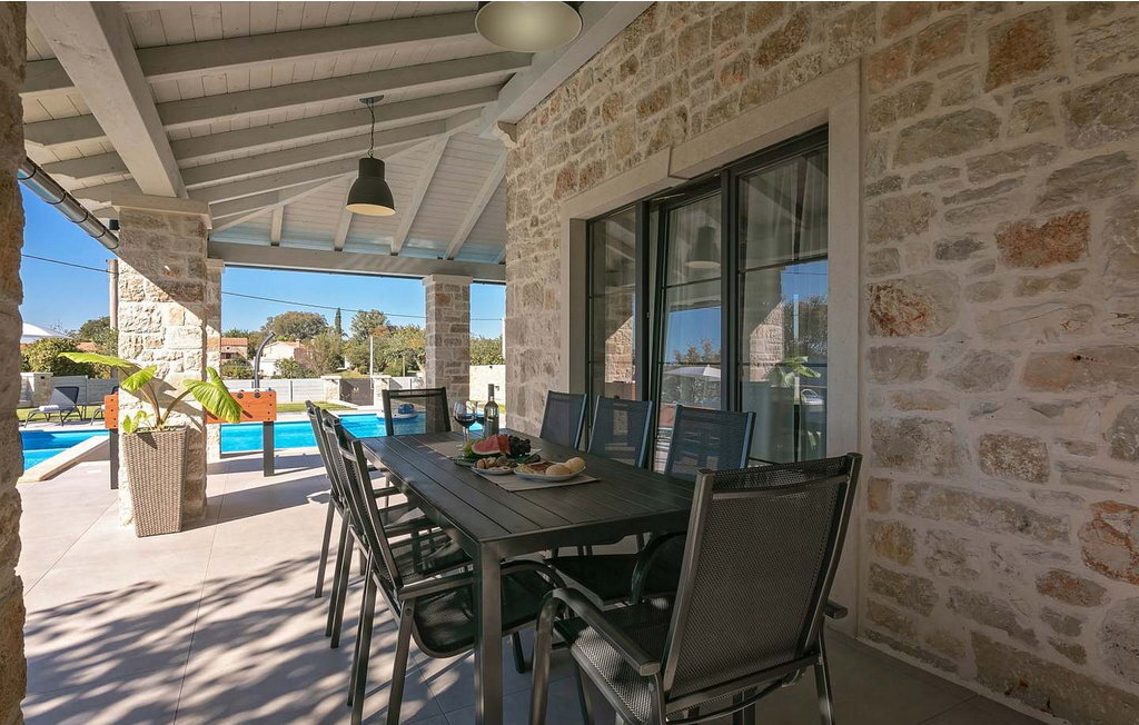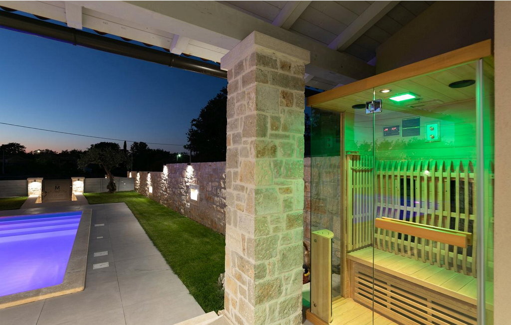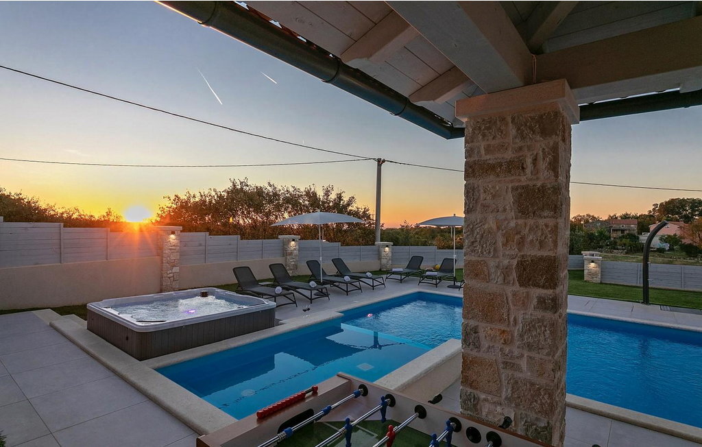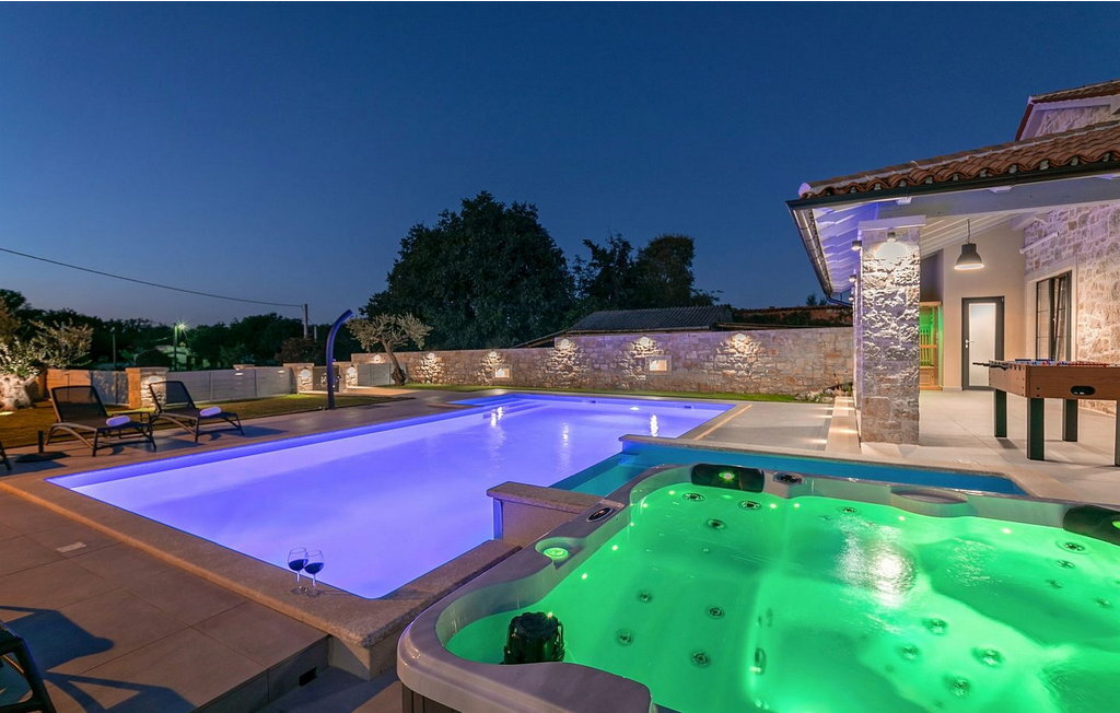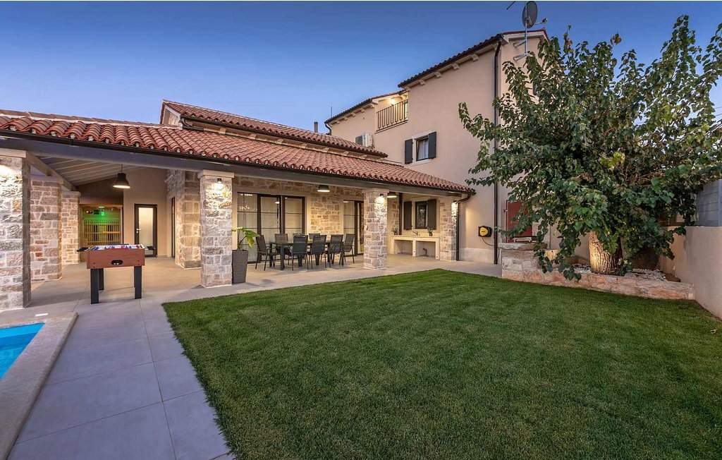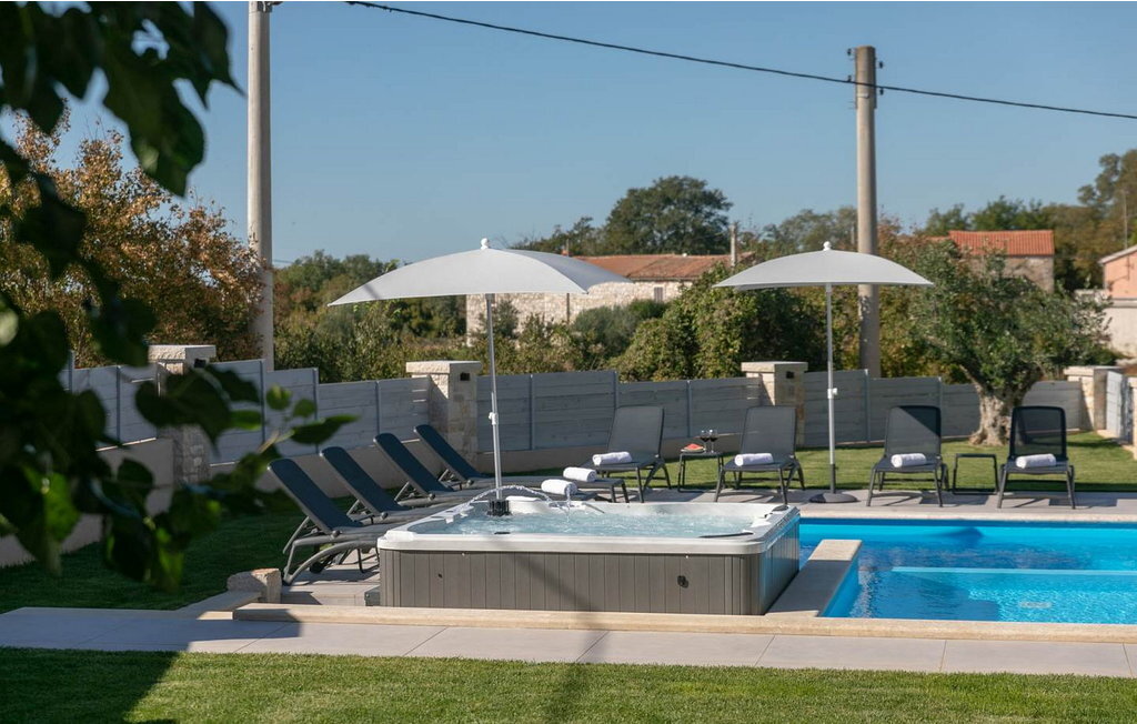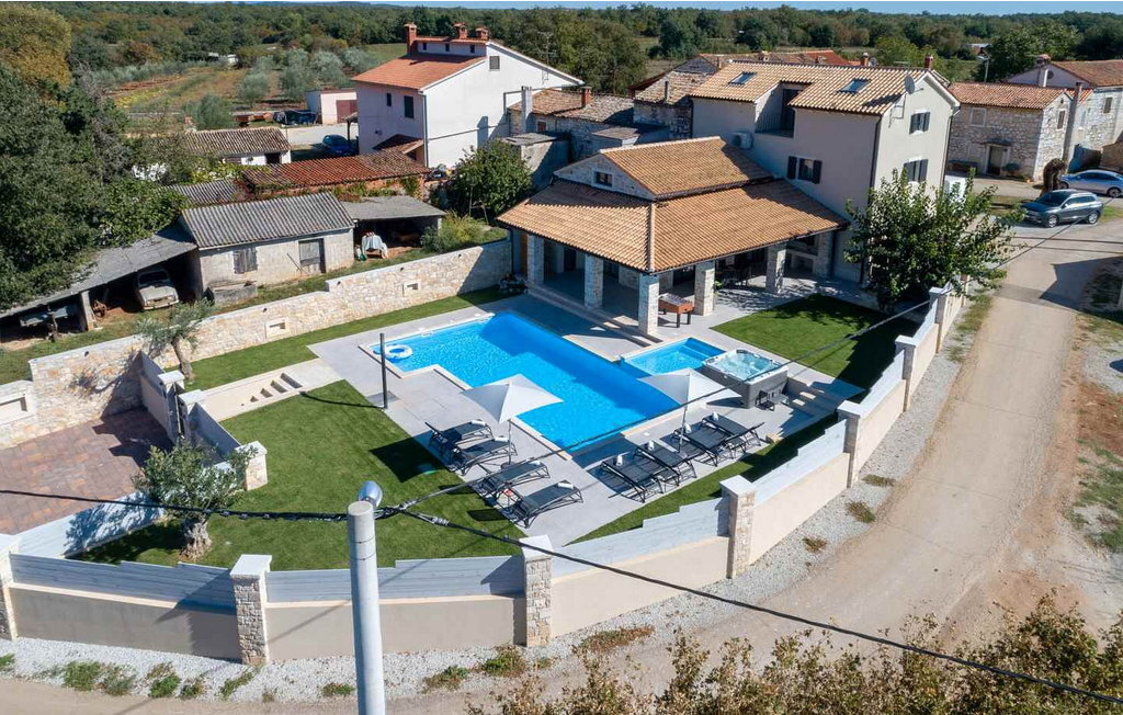 La Villa M est une maison de vacances luxueuse et magnifiquement aménagée, qui allie style moderne et charme traditionnel. Située à seulement 650 m du restaurant le plus proche et à 2 km d'une épicerie, cette villa offre un confort et une commodité ultimes. La villa est située sur un terrain entièrement clôturé et dispose d'une grande piscine, d'une pataugeoire de 6 m², d'un jacuzzi et d'un sauna. Profitez des repas en plein air sur la terrasse couverte avec table à manger et barbecue. Les autres commodités comprennent des toilettes pour les invités et trois places de parking. La villa est répartie sur trois étages climatisés. Le rez-de-chaussée comprend une salle de séjour élégante, une table à manger, une cuisine entièrement équipée et une chambre double avec salle de bains privative. Le premier étage dispose de deux chambres doubles, chacune avec sa propre douche/toilette. Le deuxième étage (mansarde) offre une chambre double, une salle de bain avec baignoire et douche séparée, un débarras avec machine à laver et un balcon avec vue panoramique sur la mer. La Villa M est située à Mihelii, à seulement 6 km de Porec et 7 km de la plage la plus proche. Elle offre un emplacement idéal pour explorer le riche patrimoine culturel de Porec, dont la célèbre basilique d'Euphrasie. Veuillez noter que les groupes de jeunes et les enterrements de vie de garçon ne sont pas acceptés dans ce logement. Un groupe de jeunes dans ce logement se compose de personnes âgées de 26 ans ou moins.
