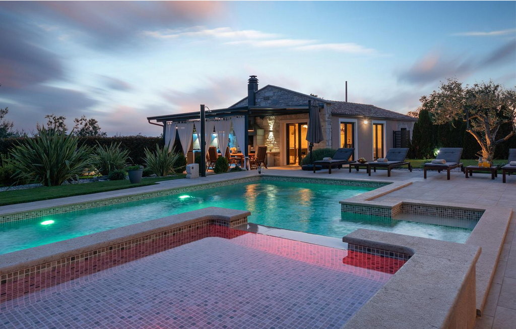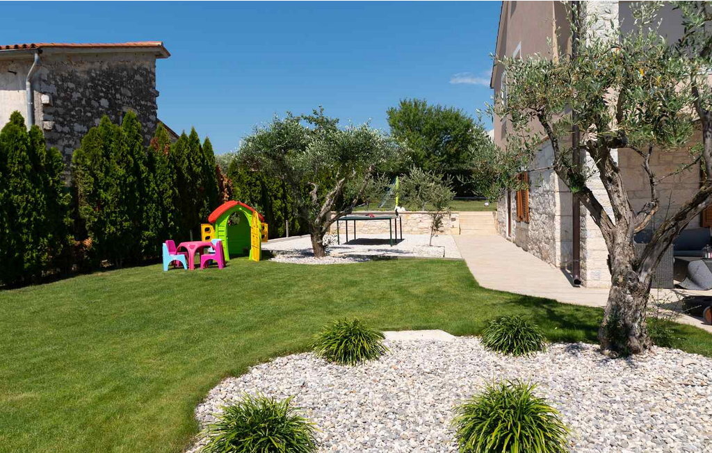 La maison de vacances se trouve à 6,5 km de la mer et à 15 km de la ville de Porec. Sur un terrain bien entretenu et entièrement clôturé de 1 200 m², elle offre à ses hôtes une piscine avec bassin pour enfants, une terrasse couverte avec barbecue, une table de ping-pong, un terrain de badminton, une maisonnette de 40 m² avec billard et jacuzzi et trois places de parking.