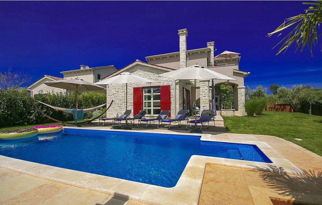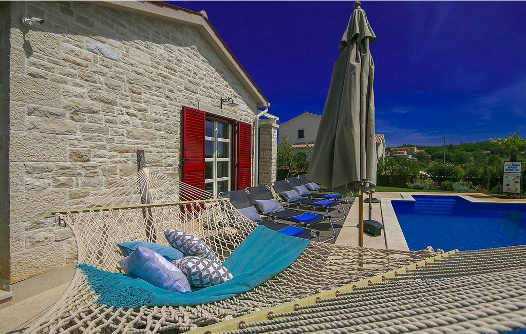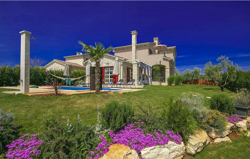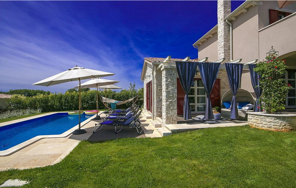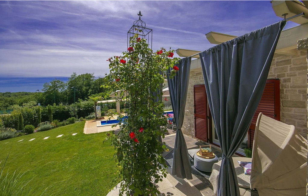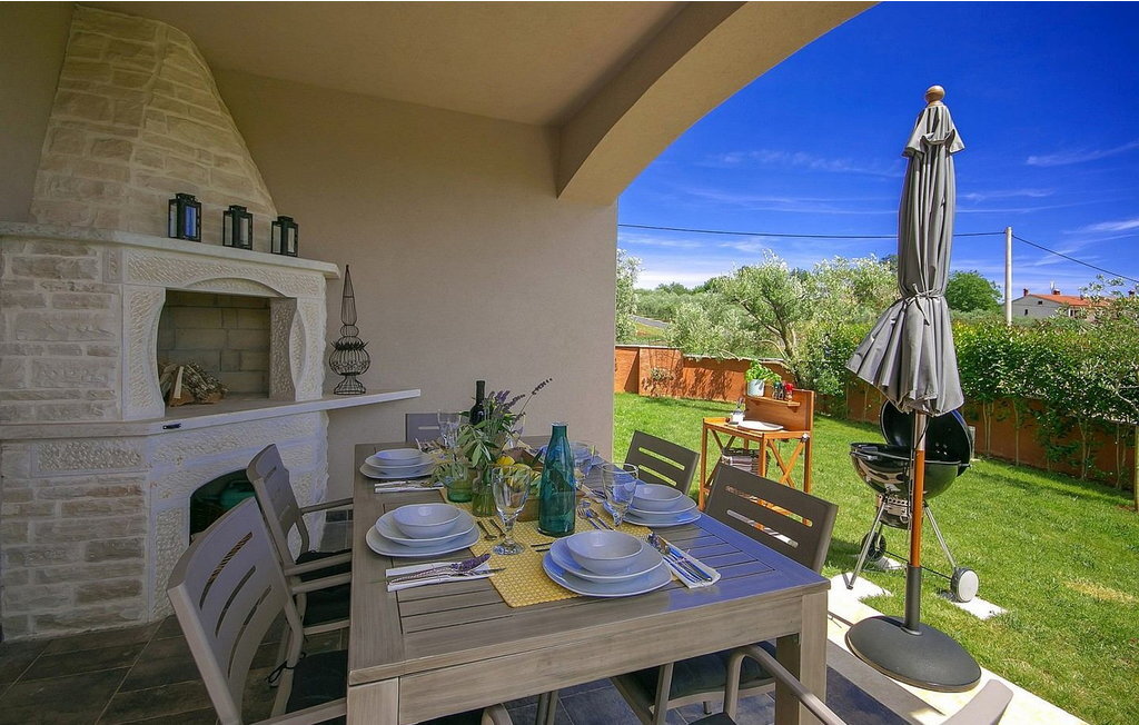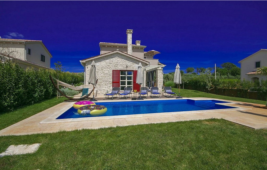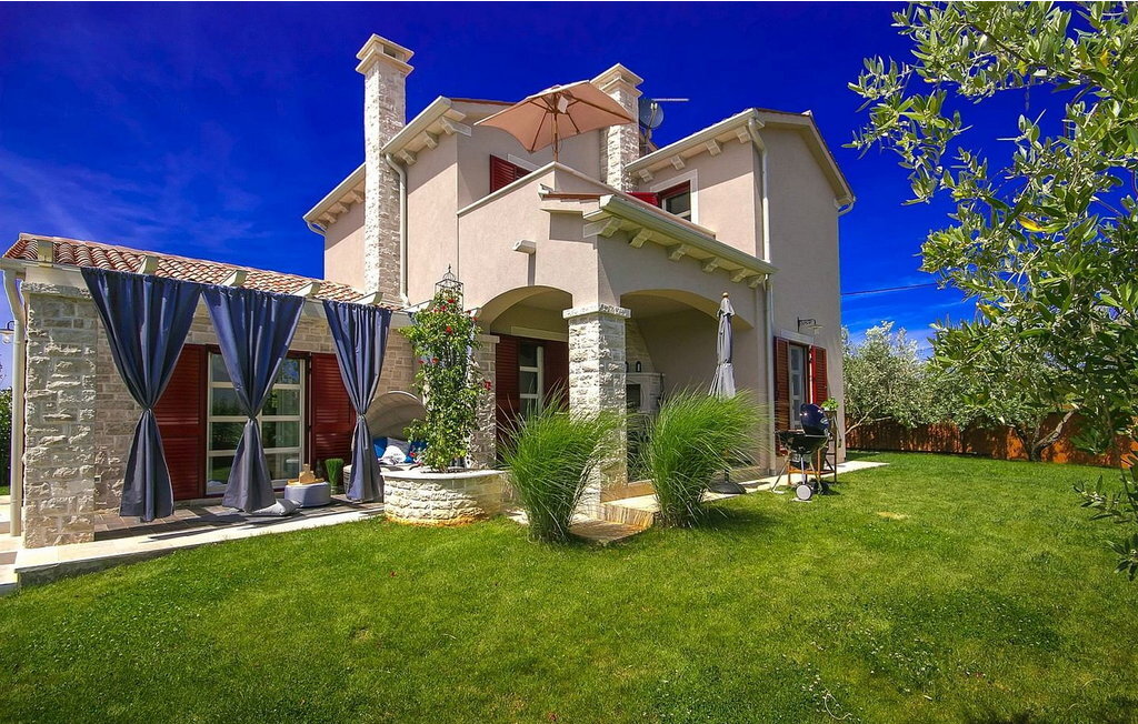 La Villa Emily est une maison en pierre moderne récemment construite, située dans le village de Vrh Lasici, près de Vizinada, dans une région viticole.