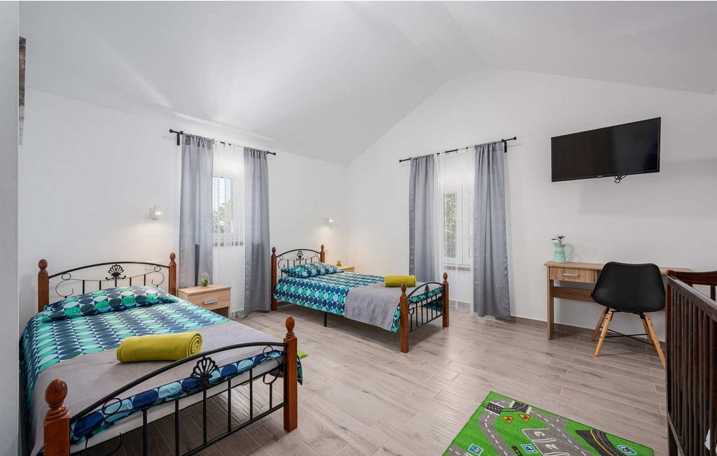 De la piscine s'étend une vue magnifique sur le paysage verdoyant et les collines environnantes. La villa a été construite en 1918 et entièrement rénovée en 2020. Les environs sont connus pour leurs excellents viticulteurs, leurs excellentes tavernes traditionnelles et leur nature extrêmement belle. À proximité immédiate de la maison se trouve un site naturel d'escalade et, à 3 km, une cascade unique avec un lac. Sur le grand terrain, les hôtes ont à leur disposition une piscine, des chaises longues, un parasol, un barbecue et une table à manger, une aire de jeux pour enfants et un parking pour plusieurs voitures.