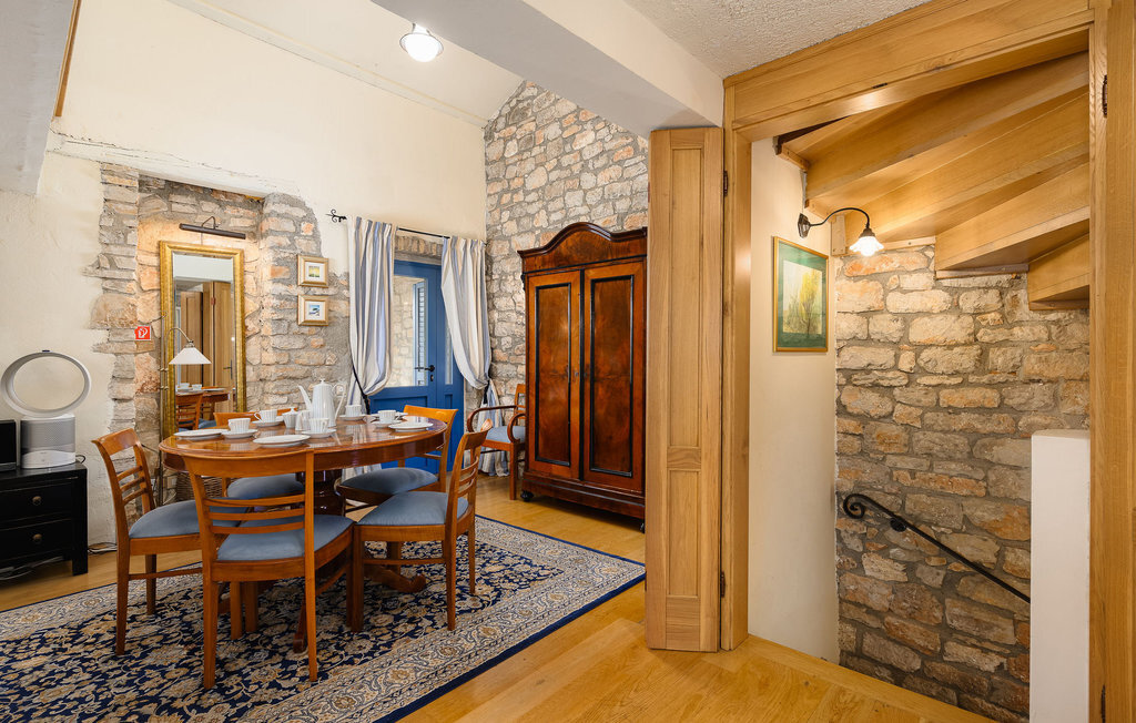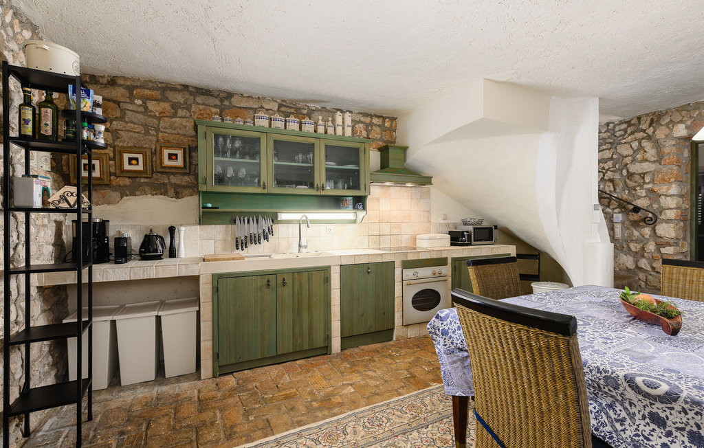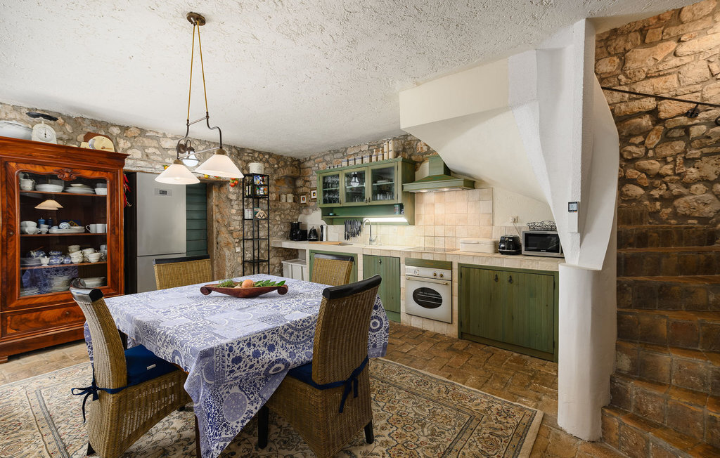 Lors de la restauration de la maison, on a veillé à conserver les éléments traditionnels de cette ancienne maison en pierre d'Istrie, tout en offrant à ses hôtes un haut niveau de confort. L'intérieur de la maison est une combinaison réussie de matériaux traditionnels et contemporains avec beaucoup d'espace et de lumière, ce qui garantit à ses hôtes des vacances vraiment extraordinaires.
