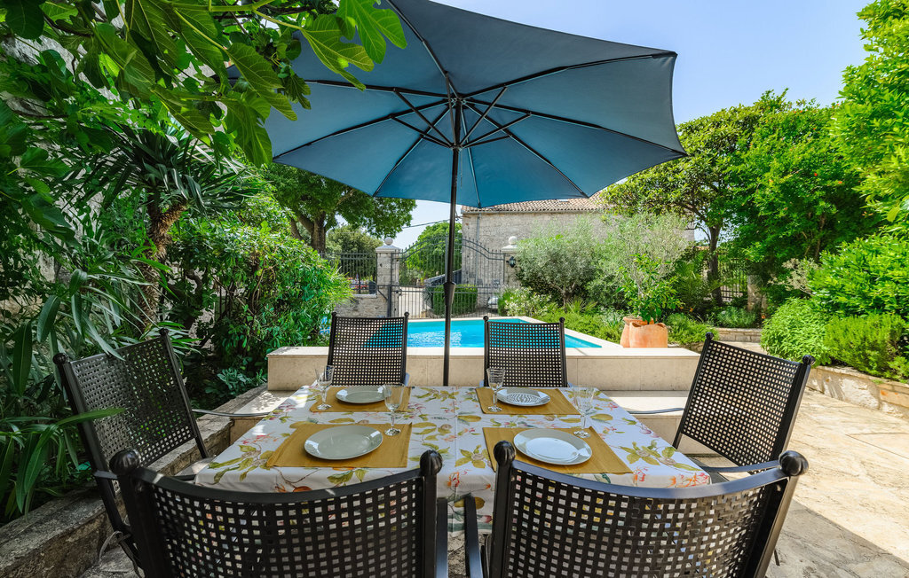 Sur le terrain clos de plus de 300 m², les hôtes disposent d'une piscine privée, d'une terrasse protégée par un grand parasol et équipée de meubles de jardin de qualité, d'un barbecue et d'un parking. Le jardin méditerranéen permet de profiter du soleil et des vacances sans souci.