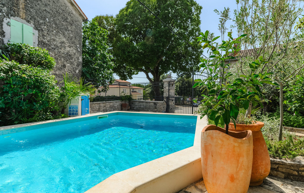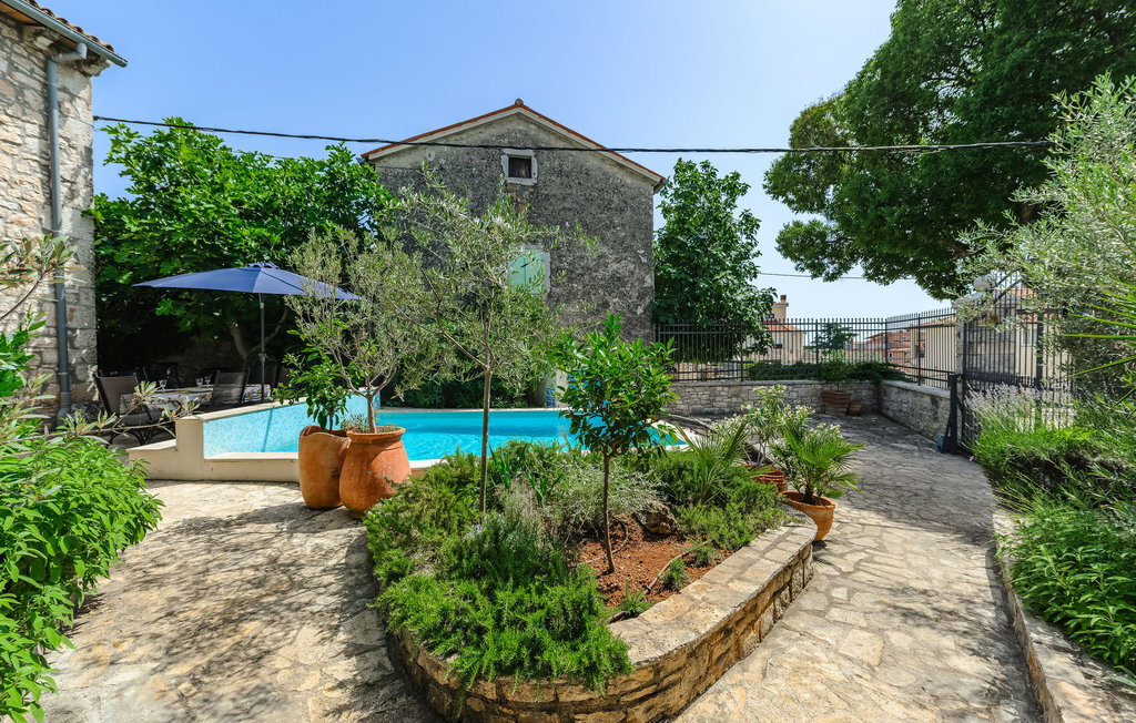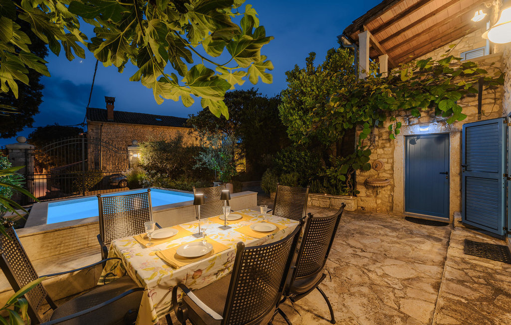 Cette authentique maison en pierre d'Istrie se trouve dans le petit village pittoresque de Musalez, à 3 km de Porec et à 4 km de la mer. La maison a été construite autour de l'année 1900 et a été complètement