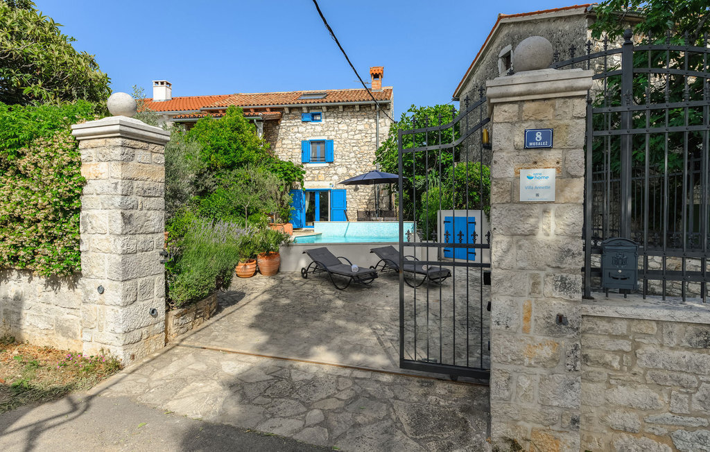La Villa Annette est conçue pour 4-6 personnes et offre une surface habitable de plus de 160 m² sur 3 étages. Au rez-de-chaussée de la maison se trouve un espace ouvert avec un grand salon, une cuisine entièrement équipée, une grande table à manger, un coin salon confortable avec 2 canapés et plusieurs fauteuils, une télévision à écran plat avec DVD, une cheminée et un bureau. En outre, au rez-de-chaussée se trouve une salle de bains avec douche, WC, sauna finlandais et bain de vapeur. Au premier étage se trouve un grand salon avec deux canapés (dont un canapé-lit), dont l'un offre une possibilité de couchage pour une personne, un fauteuil confortable, une chaîne hi-fi et une télévision à écran plat par satellite avec DVD. Une kitchenette, une chambre à coucher avec un lit double américain de haute qualité, ainsi qu'une salle de bain avec WC et douche, baignoire séparée. Devant l'entrée supérieure, une petite terrasse avec une table et des chaises invite à se détendre à l'ombre d'un grand citronnier. Au dernier étage se trouvent deux chambres à coucher avec des lits doubles français. De ces chambres, on a une vue de rêve sur la mer et le paysage istrien.