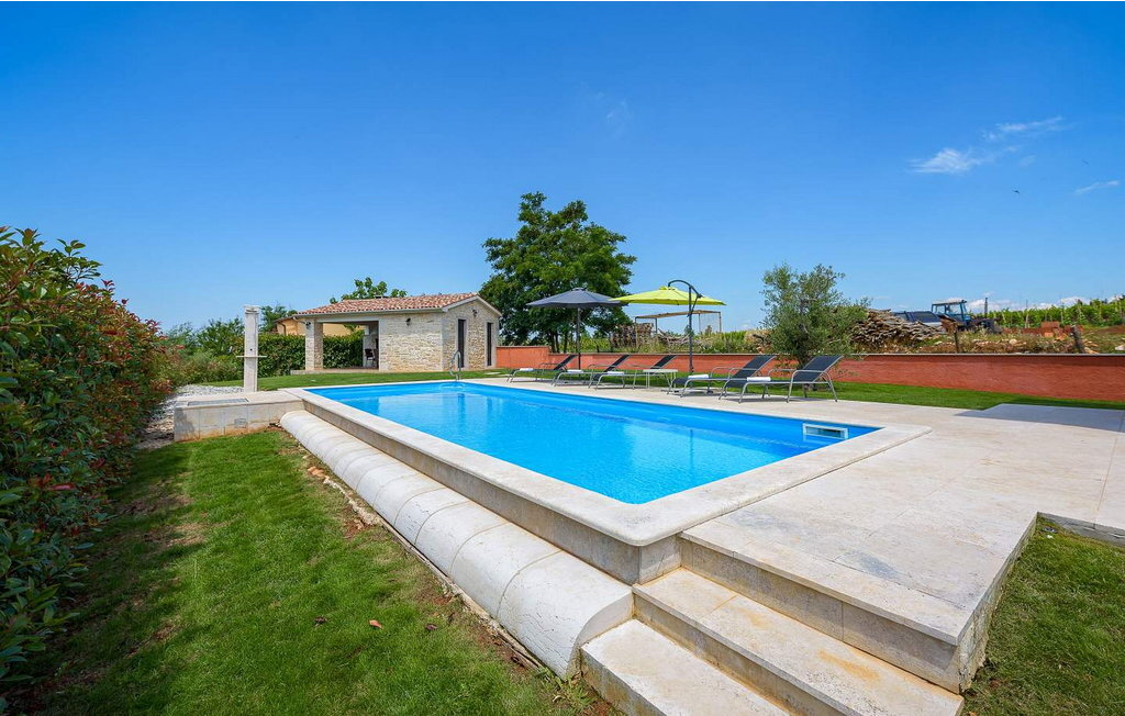 La Villa Manuela est une villa de luxe récemment construite, située à la périphérie du village de Kastelir, avec une vue panoramique magnifique sur les champs cultivés et la mer. Kastelir se trouve à environ 12 km de Porec et Novigrad et de leurs plages.
