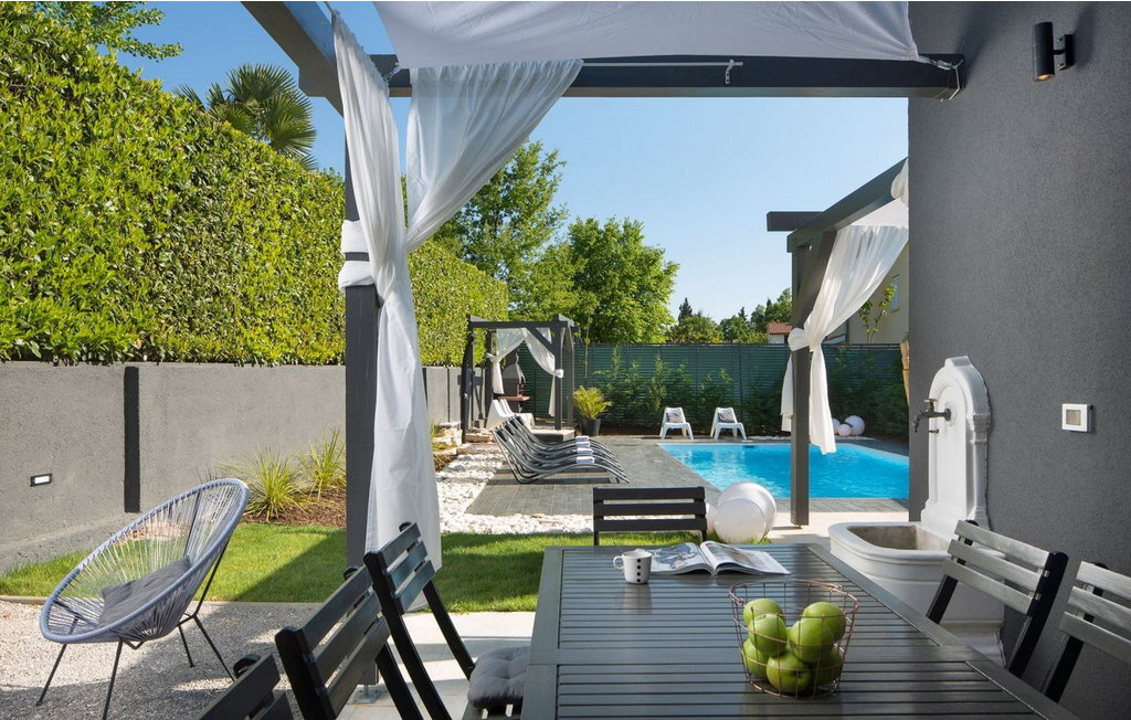 Villa Evita est une belle maison de vacances moderne (maison jumelée) située dans le quartier de Kukci, à environ 3 km de la mer et à 4 km (à peine 5 minutes) de Porec.