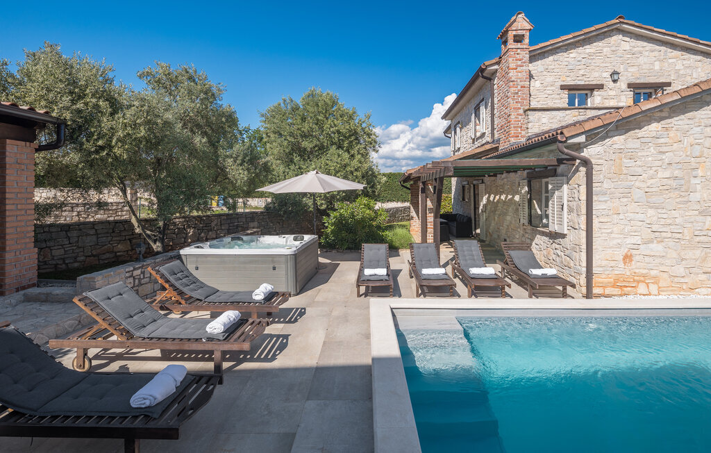 Bien-être à l'extérieur : Location de vacances disposant de chaises-longues et d'un ou plusieurs équipements tels que piscine extérieure, jacuzzi extérieur, lit à baldaquin de jardin etc...