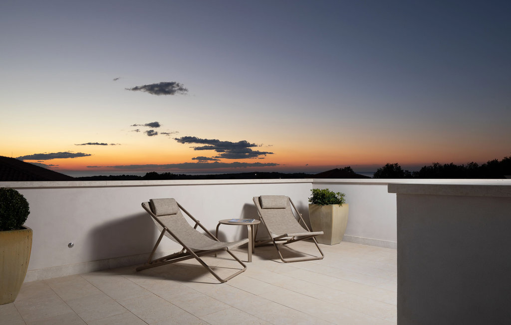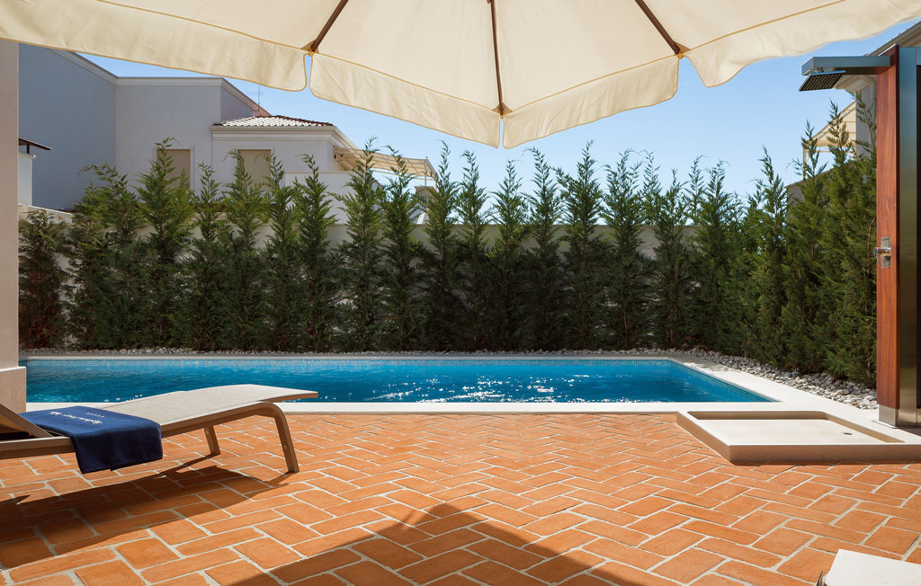 Dehors, les terrasses vous invitent à profiter pleinement du soleil. Détendez-vous dans une chaise longue, profitez de la belle vue et nagez à votre guise dans la piscine.