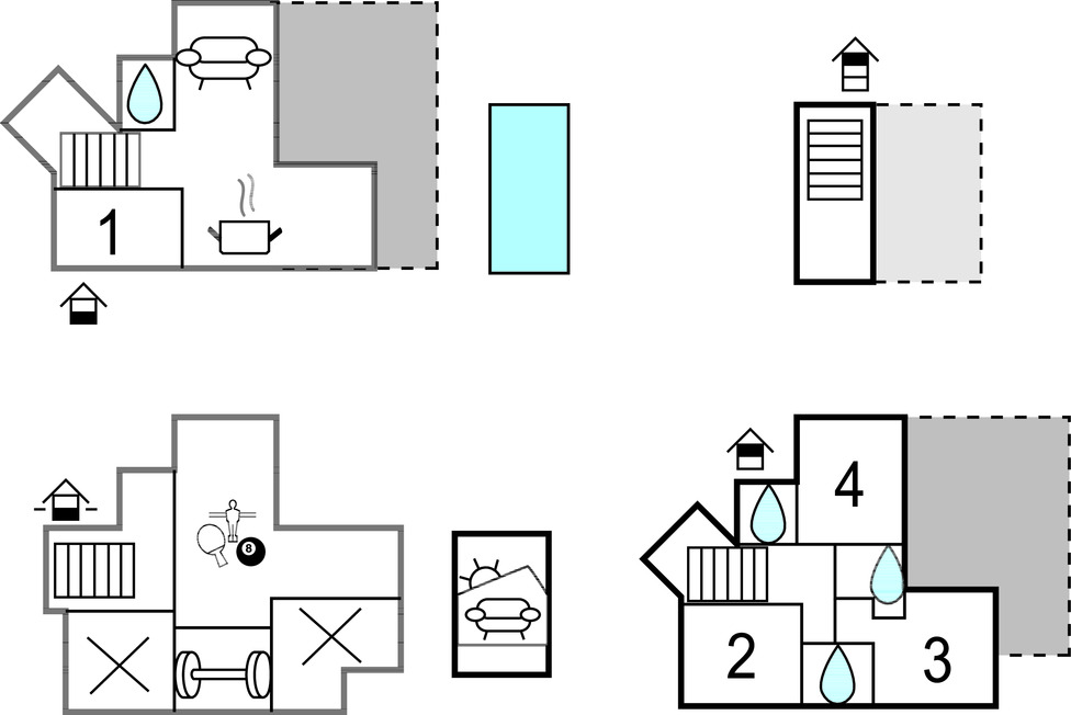 Location de vacances avec activités : Cette location de vacances comprend un ou plusieurs équipements de loisir (ping-pong, billard, baby-foot...)