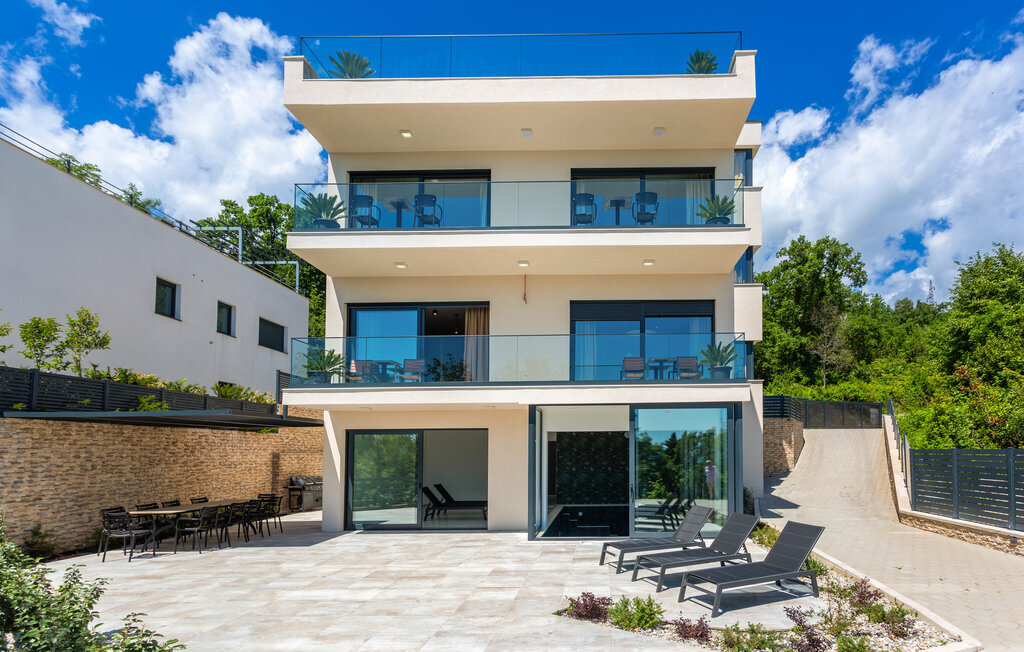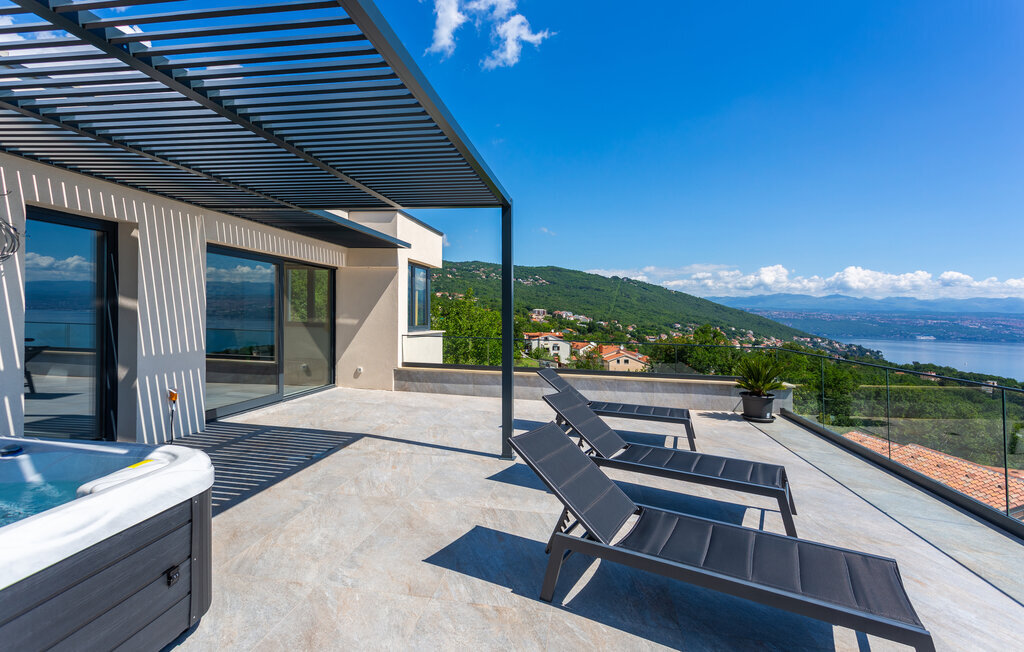Bien-être à l'extérieur : Location de vacances disposant de chaises-longues et d'un ou plusieurs équipements tels que piscine extérieure, jacuzzi extérieur, lit à baldaquin de jardin etc...