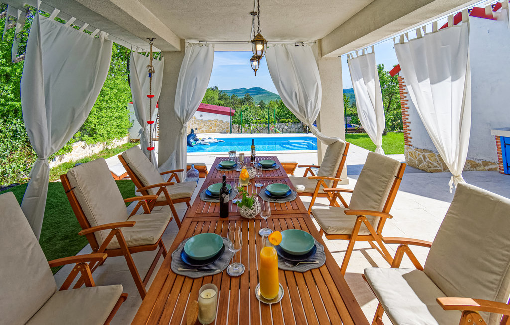 L'espace extérieur attrayant de la maison vous invite à passer beaucoup de temps à l'extérieur. Détendez-vous dans les chaises longues avec votre lecture préférée, régalez toute la famille avec un délicieux dîner au barbecue et rafraîchissez-vous dans la piscine dès que vous en avez envie.