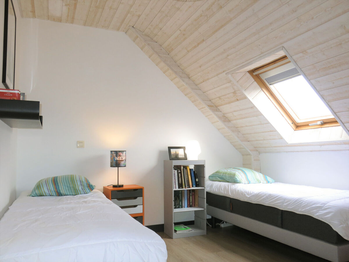 À l'étage supérieur: 1 chambre, mansardée avec 2 lits (80 cm, longueur 200 cm).