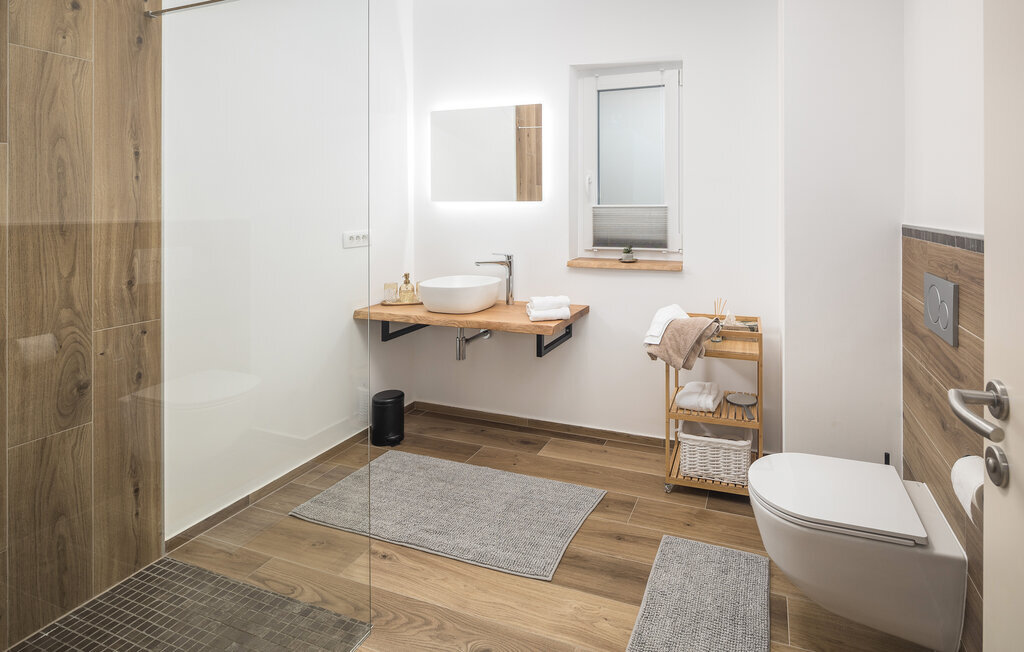Toilettes: eau chaude/froide, Douchette et baignoire