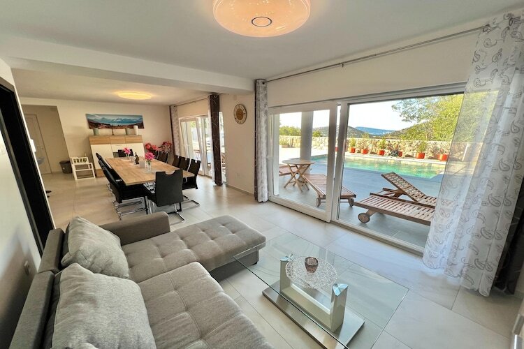Située dans le paisible village de Bribir, cette spacieuse villa de 10 chambres peut accueillir jusqu'à 18 personnes, idéale pour les familles nombreuses ou les séjours en groupe. À seulement 8 km de la mer et de la plage, et à 9 km du centre animé de Crikvenica, elle offre un parfait mélange de détente et d'aventures à proximité. La piscine privée, le jardin et la cheminée extérieure créent un cadre serein pour des journées ensoleillées et des soirées agréables.