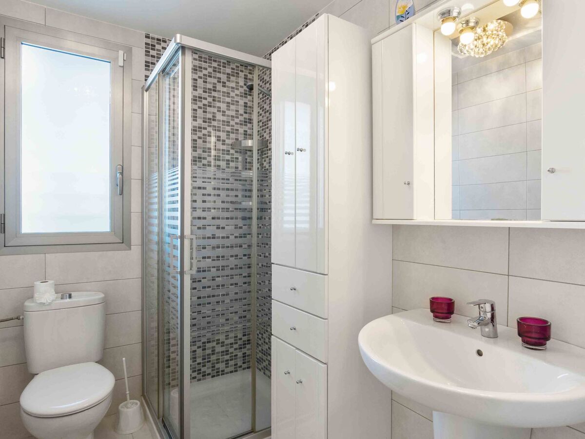 À l'étage supérieur: 1 chambre avec 1 grand-lit (1 x 190 cm, longueur 200 cm), douche/WC, air-conditionné et chauffage à air chaud.