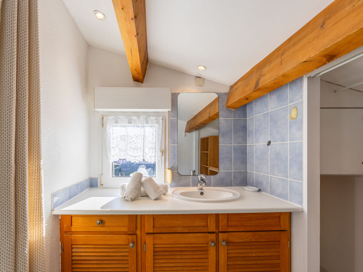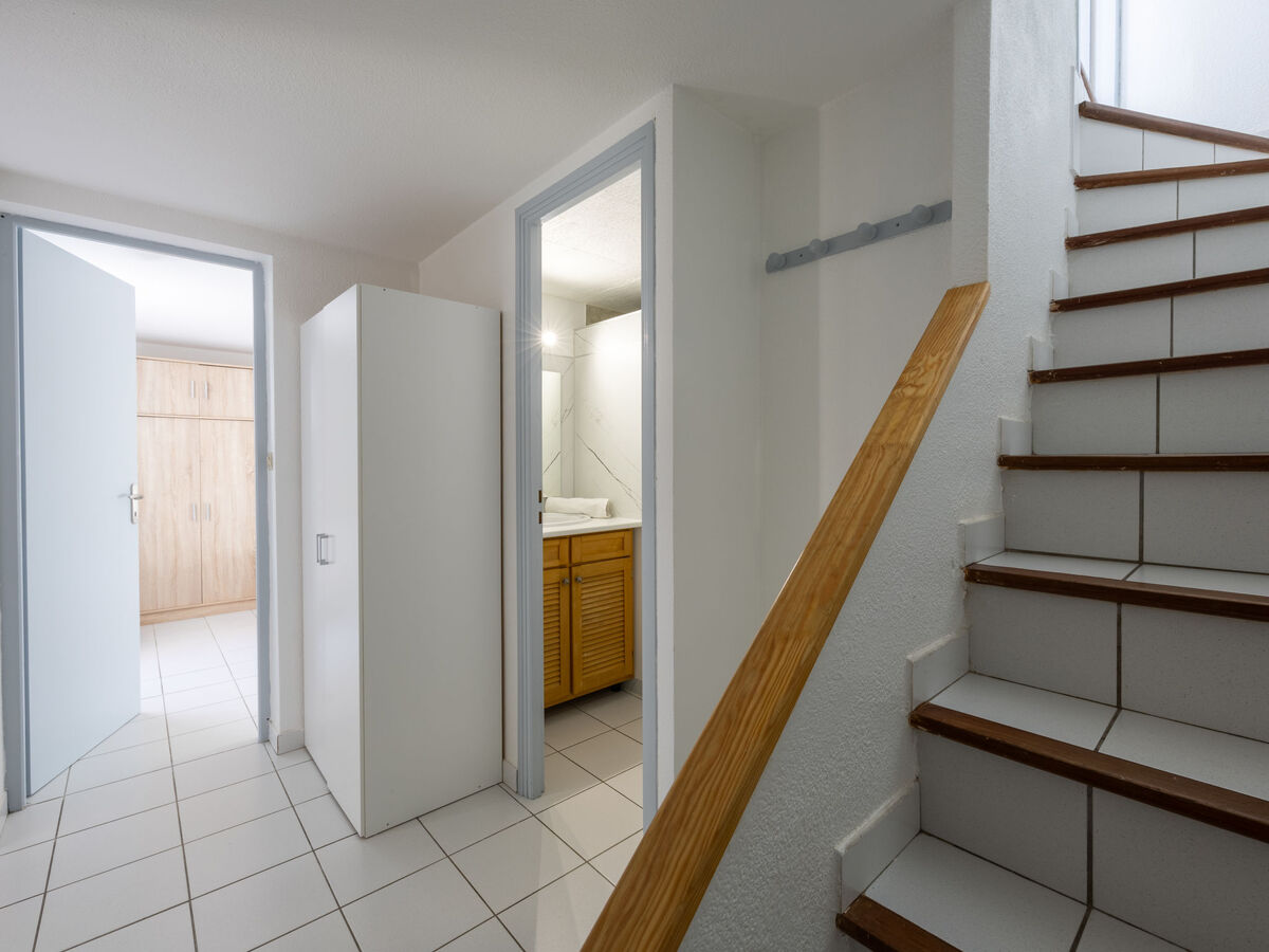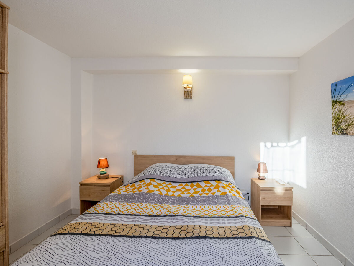 À l'étage inférieur: 1 chambre avec 1 grand-lit (140 cm, longueur 190 cm).