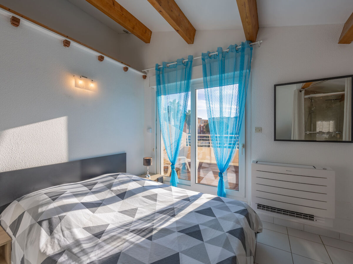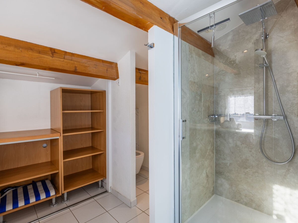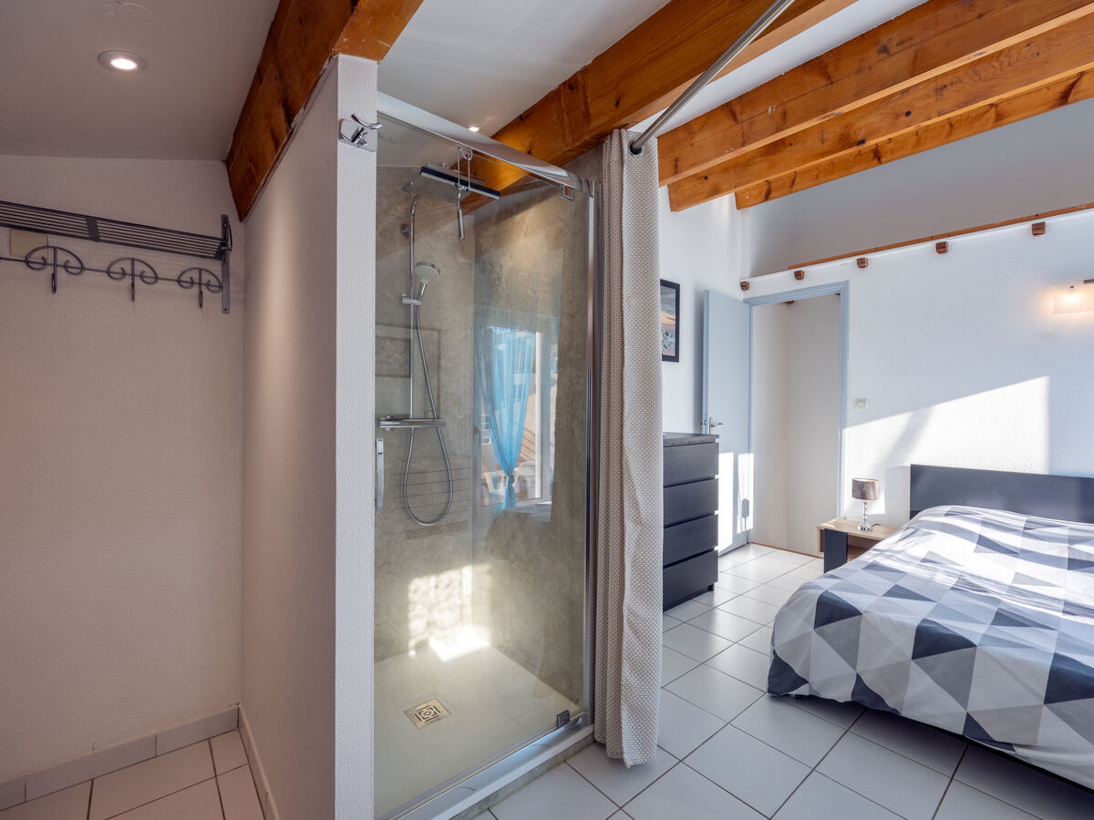À l'étage inférieur: 1 chambre avec 1 grand-lit (140 cm, longueur 190 cm).