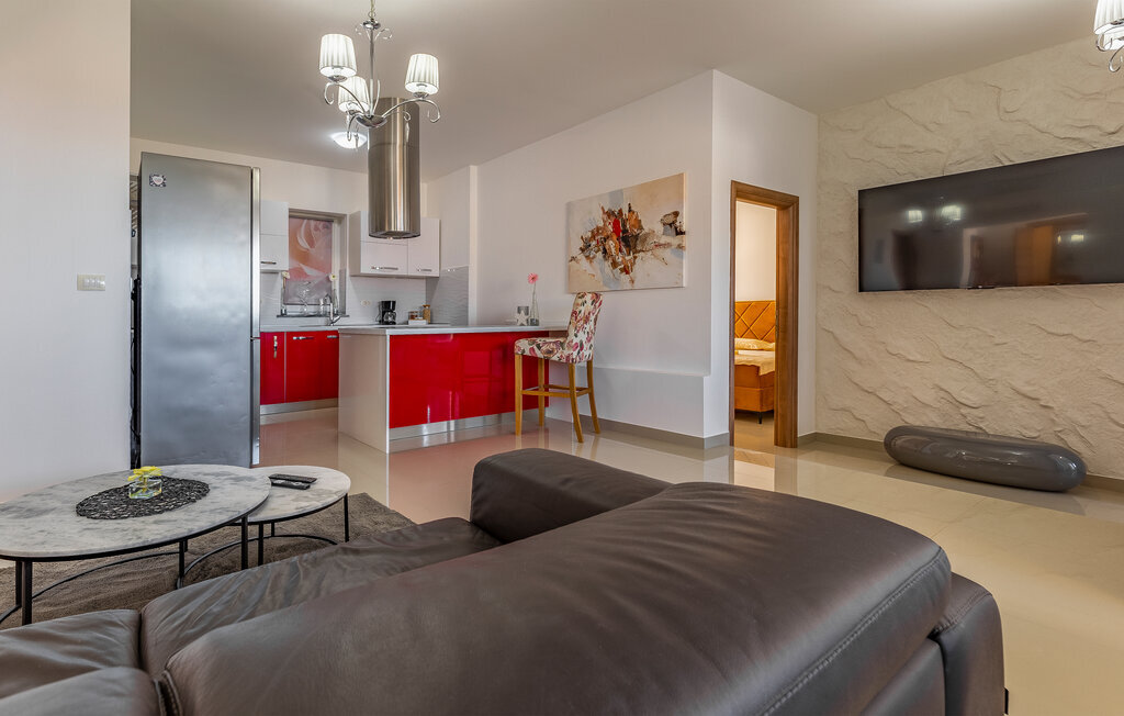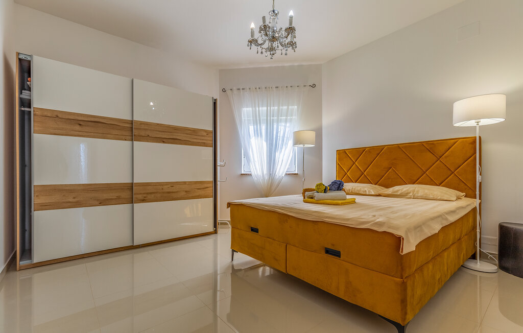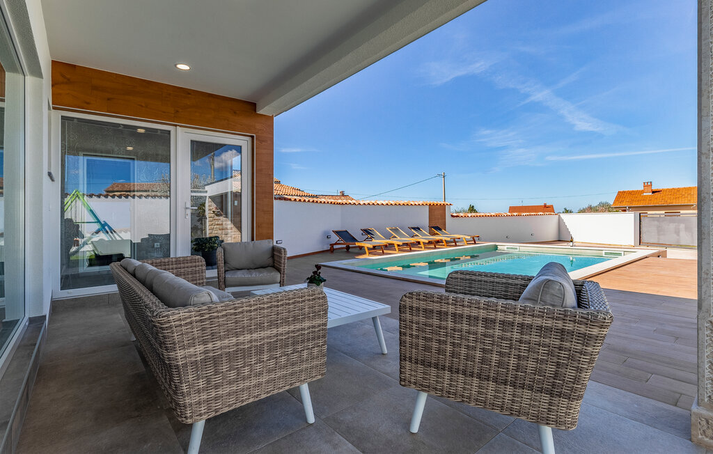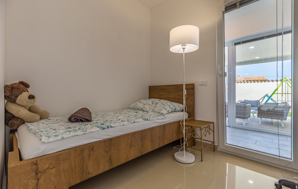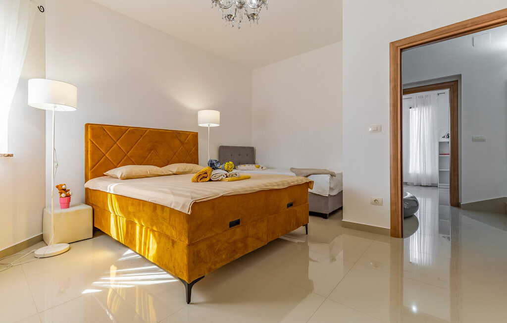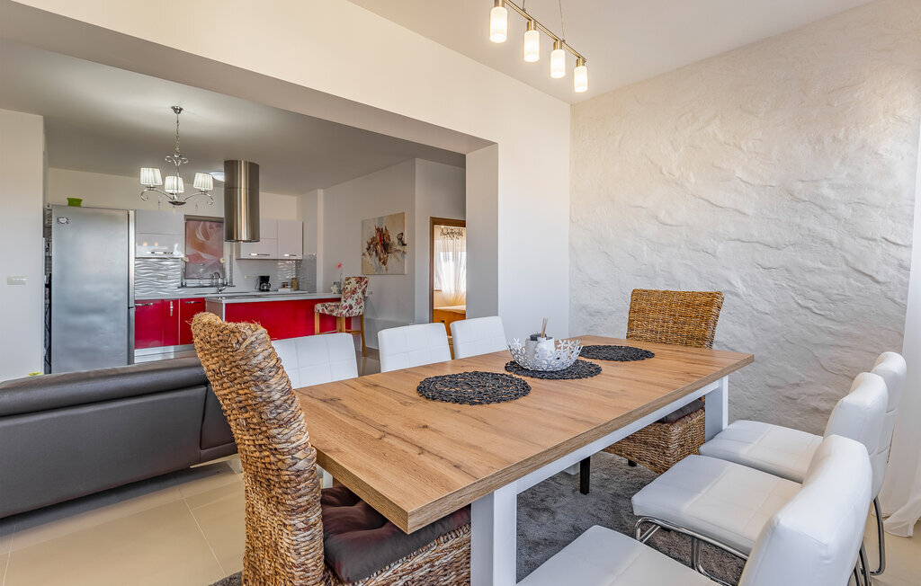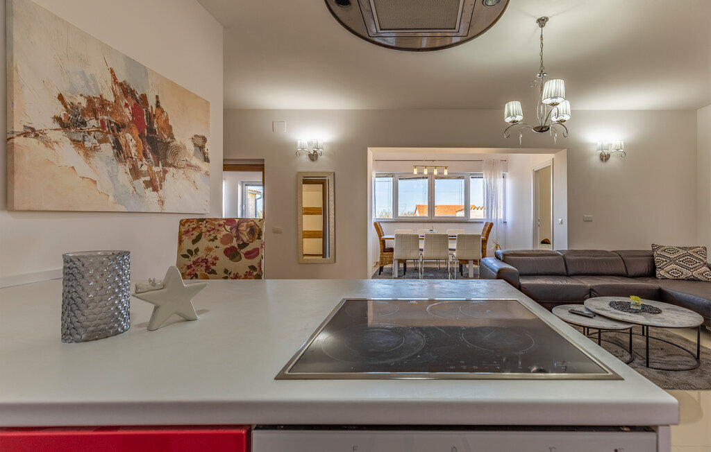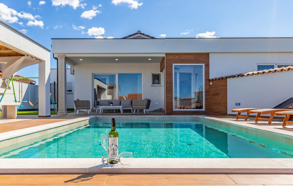 Située à quelques kilomètres seulement au nord de Pula, cette élégante maison de vacances vous accueille pour de merveilleuses vacances en Istrie. Profitez de l'ambiance lumineuse pendant que vous préparez le petit déjeuner familial dans la cuisine ouverte et que vous discutez ensuite avec animation des projets de la journée autour de la table à manger. Plus tard dans la journée, vous pouvez cuisiner ensemble dans la cuisine, en utilisant peut-être des ingrédients régionaux. L'espace extérieur offre de nombreuses possibilités avec différents espaces pour se détendre et jouer. Vous pouvez faire un barbecue sous la terrasse couverte, tandis que les enfants peuvent s'amuser sur l'aire de jeux à côté. Plongez dans la piscine, qui promet un rafraîchissement et des plaisirs aquatiques.