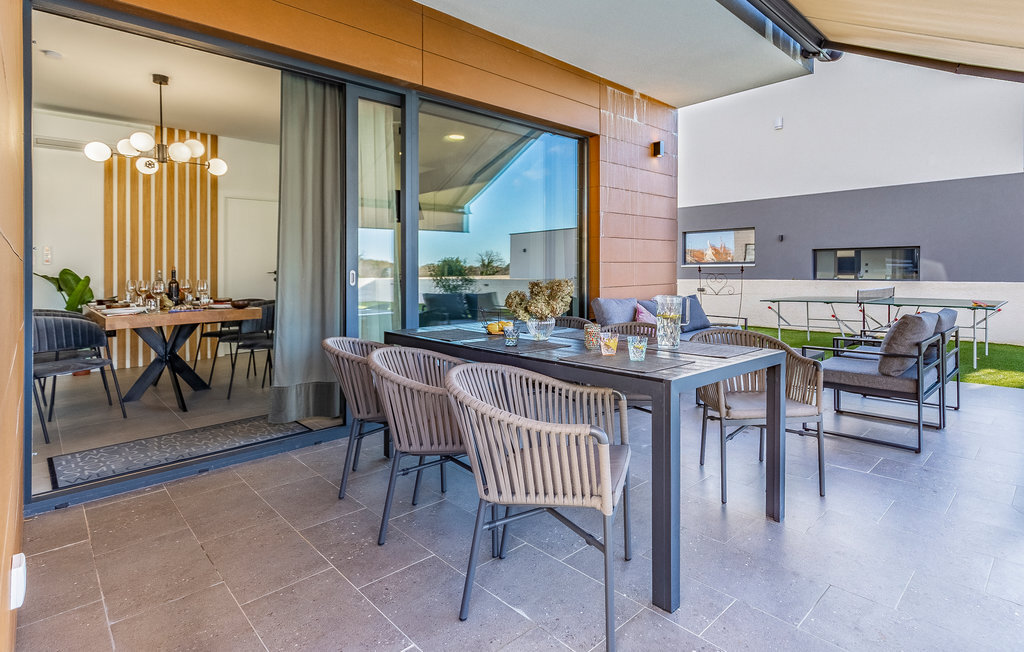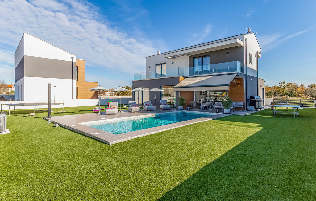 Maison de vacances moderne et spacieuse avec piscine, jacuzzi et grand jardin.