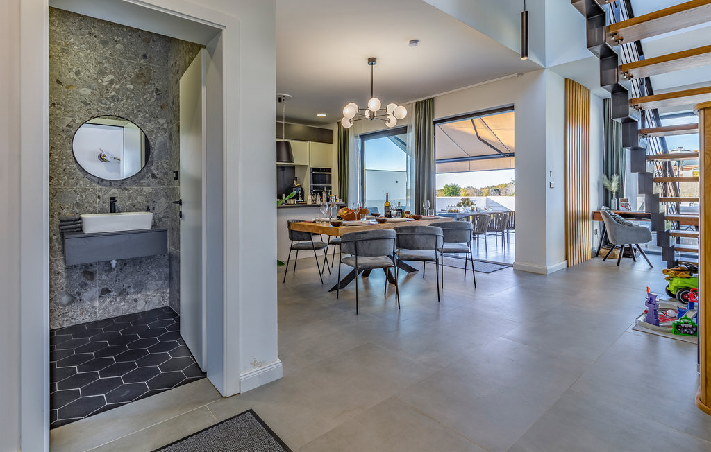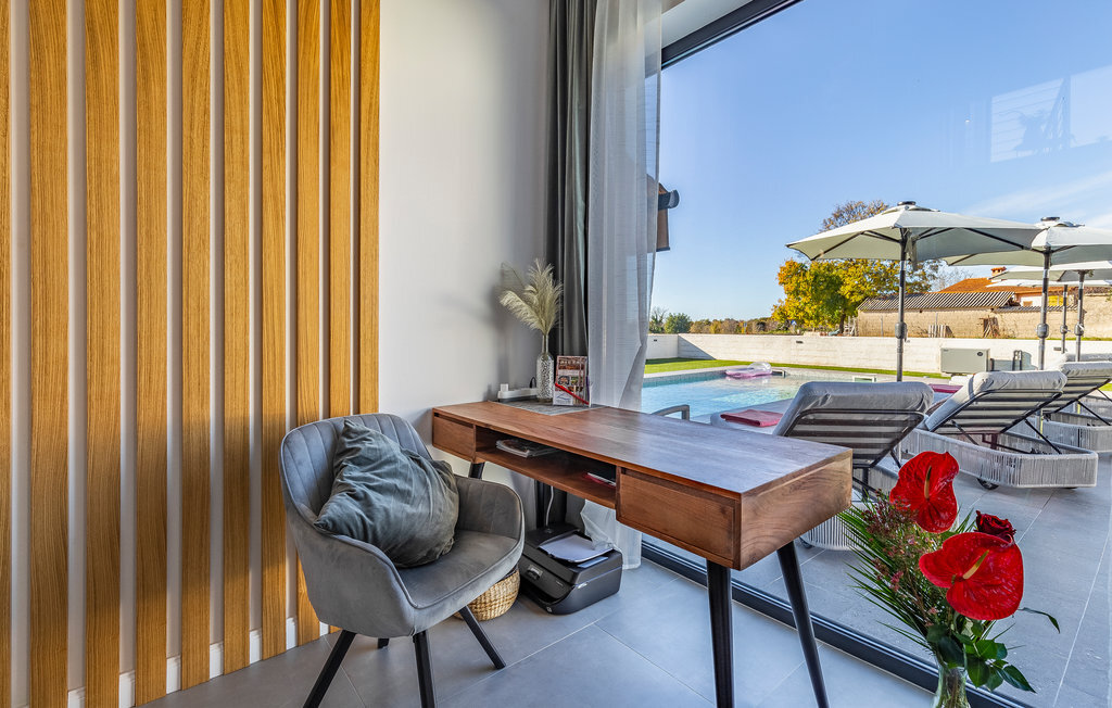 Cette magnifique maison de vacances se trouve dans le village d'Orbanici en Istrie. L'emplacement de cette belle maison de vacances est parfait pour des vacances qui combinent des journées de dolce far niente avec des excursions dans l'une des plus belles régions d'Istrie. L'Istrie centrale offre de nombreuses possibilités, notamment des villes intéressantes, une nature intacte et une multitude d'activités. Découvrez la zip line Pazinska jama ou traversez le paysage en vous promenant à pied, à vélo ou à cheval. Les plages et les magnifiques villes côtières ne sont qu'à une courte distance en voiture et vous invitent aux plaisirs de la baignade et à la détente en bord de mer.