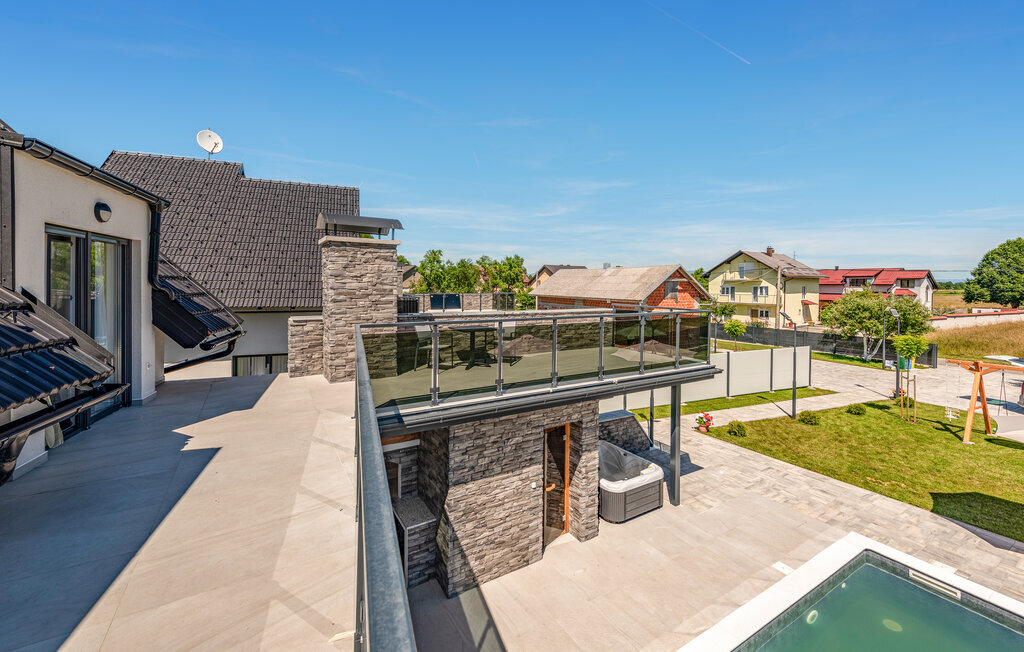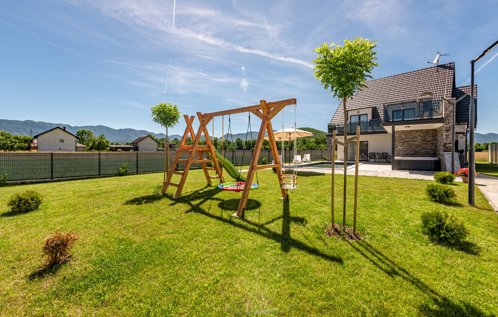Imaginez-vous assis sur la terrasse spacieuse, profitant de l'air frais du matin ou tenant un verre de vin à la main le soir. La piscine vous permet de vous rafraîchir les jours de grande chaleur, tandis que le sauna ou le jacuzzi vous offrent un pur moment de détente. Le jardin bien entretenu est un paradis pour les enfants, qui peuvent s'en donner à cœur joie sur l'aire de jeux pendant que vous préparez le dîner au barbecue.
