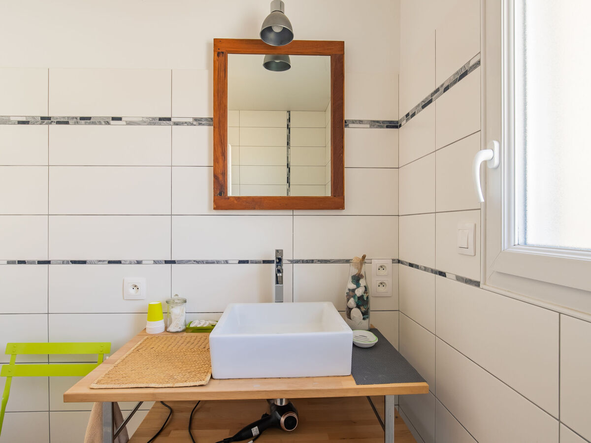 A disposition: lave-linge, sèche-linge, fer à repasser, chaise haute pour enfant, lit bébé jusqu'à 2 ans, sèche-cheveux, table à langer.
