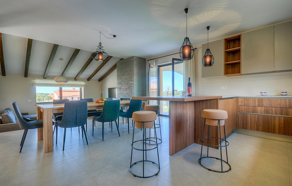 Cette villa moderne est située dans un environnement calme qui offre une situation parfaite pour votre retraite paisible de la vie quotidienne moderne. Pourtant, elle n'est qu'à une courte distance en voiture des centres touristiques istriens et des sites historiques. Les plages ne sont qu'à une courte distance en voiture de la villa et vous pouvez choisir parmi un grand nombre dans la région de Porec. La région populaire autour de Porec est bien plus que la mer et le soleil. Vous pouvez facilement constater que la ville a su conserver son image historique. Vous y trouverez des musées, des galeries et de nombreuses caractéristiques urbaines dignes d'intérêt. Le centre-ville tout entier est un monument culturel vivant. Les rues abritent de nombreuses galeries et salles d'exposition qui préservent la tradition de manière moderne. La gastronomie exceptionnelle est une belle façon de découvrir l'Istrie. La voiture est indispensable.