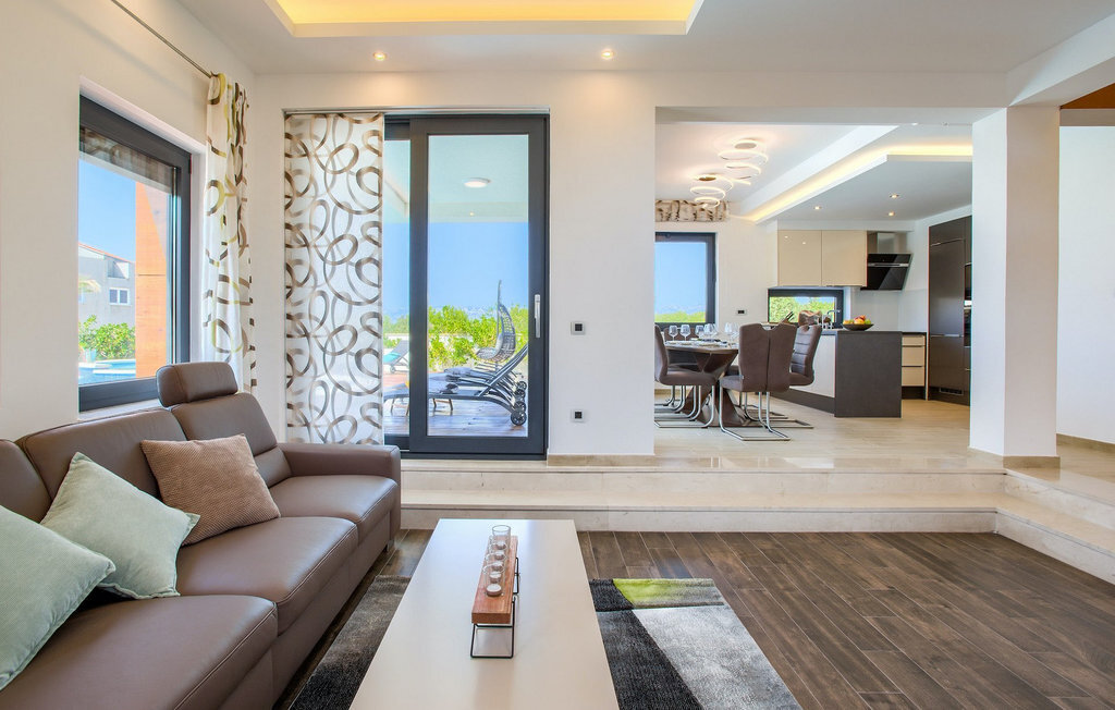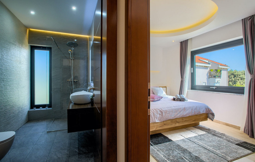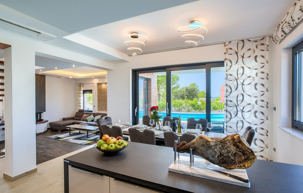 Mais le point fort de cette magnifique villa est sans doute sa terrasse sur le toit à couper le souffle, avec son espace lounge et sa vue sur la mer. C'est l'endroit parfait pour des conversations insouciantes en soirée, tout en admirant le coucher de soleil et en regardant enfin la mer respirer après une journée épuisante à la piscine ou à la plage. Zaton est un petit village touristique situé entre deux villes historiques - Nin (2 km) et Zadar (12 km). La belle architecture dalmate, le climat méditerranéen agréable, les paysages magnifiques et l'atmosphère touristique animée ainsi que la diversité des plages ombragées font de cet endroit un lieu parfait pour des vacances agréables en famille. Zaton est associé à la tranquillité, à une mer cristalline, à des fonds marins propres et à des couchers de soleil de rêve. De bonnes liaisons routières et la proximité de l'aéroport Radar permettent un voyage agréable. À 2 km de Zaton se trouve Nin, une petite ville située sur une île dans une lagune peu profonde et reliée à la terre ferme par deux ponts en pierre. Nin est connue pour être le plus ancien berceau royal de Croatie. On y trouve également la plus petite cathédrale du monde. La ville, qui possède une longue histoire et de magnifiques trésors naturels, est un excellent endroit pour le tourisme de santé, comme en témoigne la boue marine curable qui, dit-on, peut guérir de nombreuses maladies. Zadar, le centre de la Dalmatie centrale, n'est pas loin non plus (12 km). Zadar est une ville historique au riche patrimoine culturel et historique, qui remonte à l'Antiquité, au Moyen-Âge et à la Renaissance. Visitez la place romaine, l'église Saint-Donat, la cathédrale Sainte-Anastasie ou découvrez l'ancien mur de défense. Outre ses beautés culturelles et historiques, la Dalmatie offre une expérience gastronomique unique, connue pour son prosciutto dalmate fait maison (prut) et ses moules bleues méditerranéennes. Zadar est célèbre pour son installation lumineuse "Pozdrav Suncu" (Salutations au soleil) et sa symphonie d'orgues de mer. La ville complète son offre avec différentes plages, des restaurants, des bars et des cafés. Comme idée d'excursion d'une journée, nous recommanderions les parcs nationaux et naturels, tels que les chutes de Krka, les îles Kornati, les lacs de Plitvice, Vransko jezero, Telascica et Paklenica, qui vous couperont sans aucun doute le souffle.