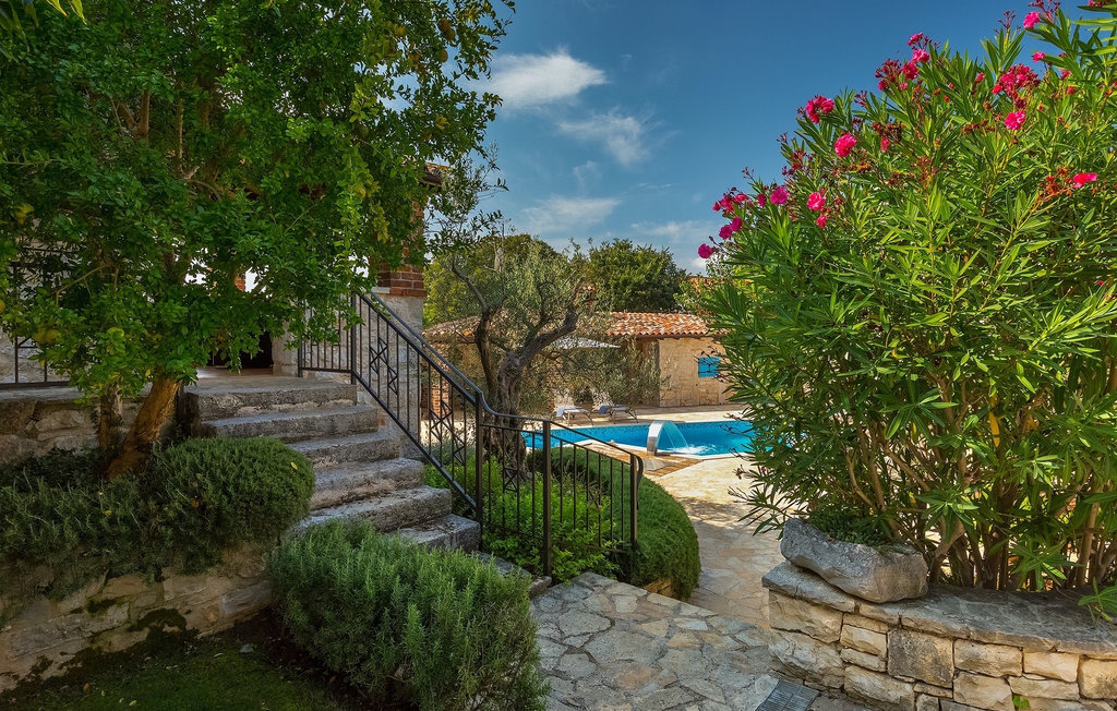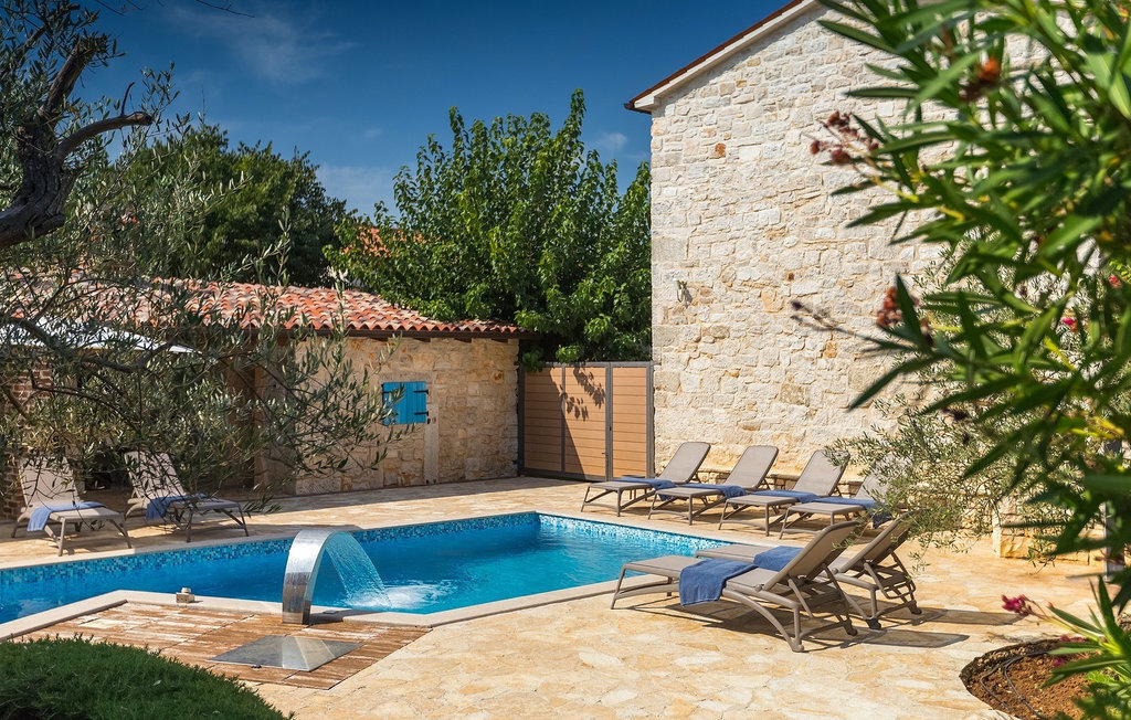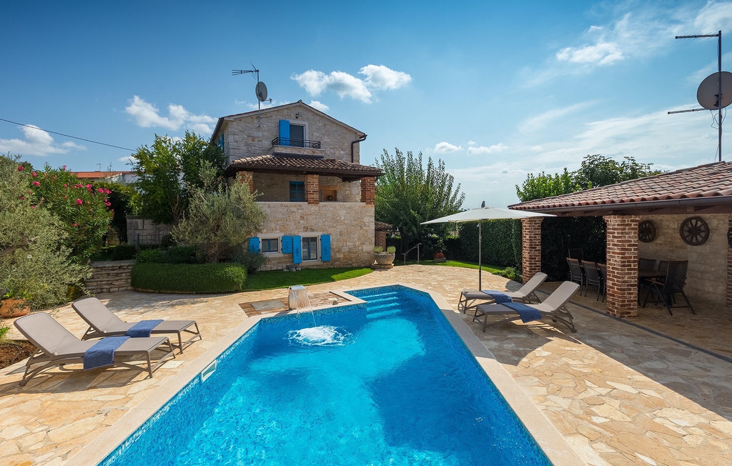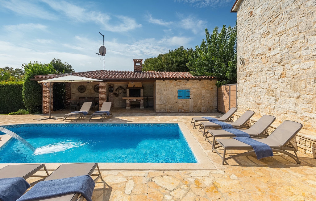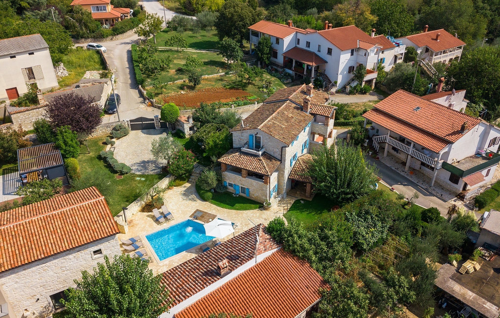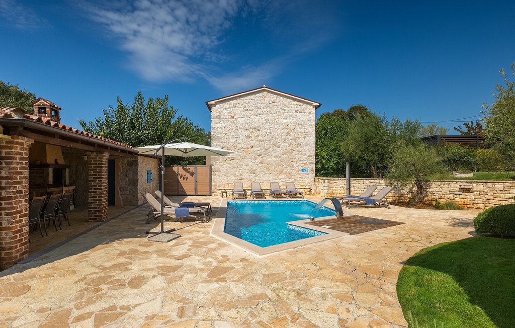 Cette villa est située dans un environnement calme et rural, ce qui en fait une retraite parfaite et tranquille de l'agitation de la vie moderne. Néanmoins, elle se trouve à une courte distance en voiture des centres touristiques et historiques d'Istrie. Cette villa en pierre de quatre chambres offre toutes une salle de bain privée et une piscine privée. La résidence en pierre, de 170 m2, a une capacité de 8 personnes. Elle est en totale harmonie avec le paysage et l'architecture traditionnelle. La villa a été construite il y a deux siècles avec de la pierre locale et des matériaux naturels. Depuis les vérandas de la maison, on peut profiter des soirées, du ciel étoilé avec une vue magnifique sur la mer.