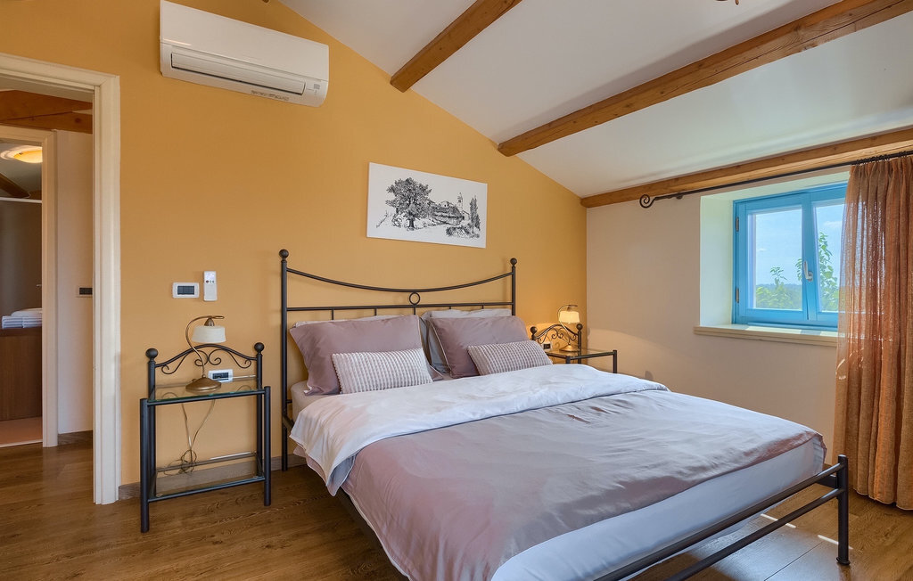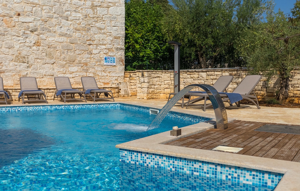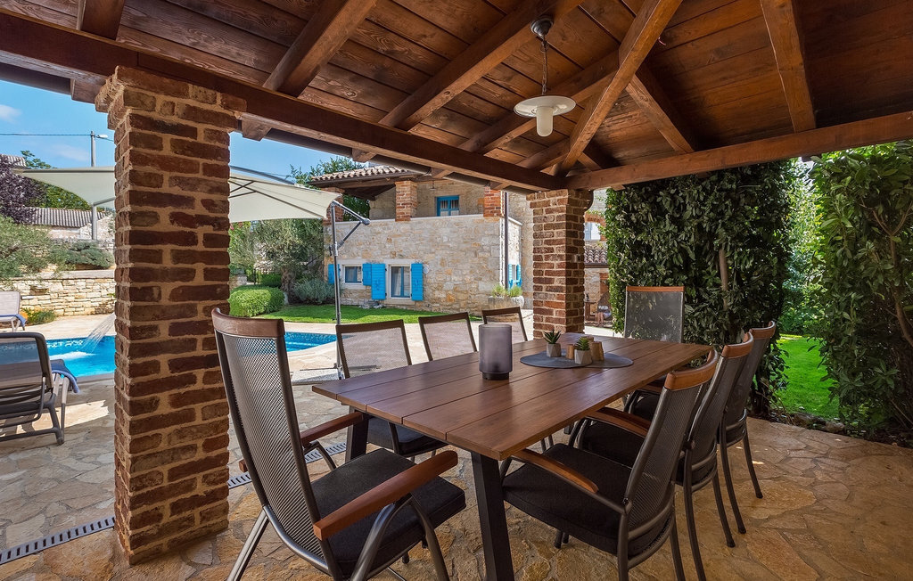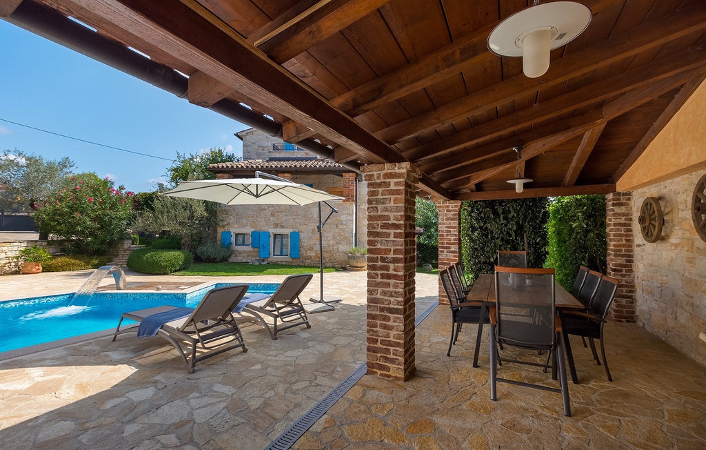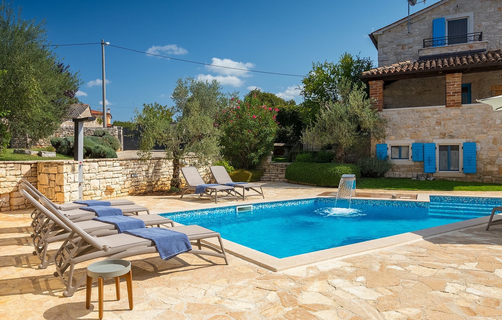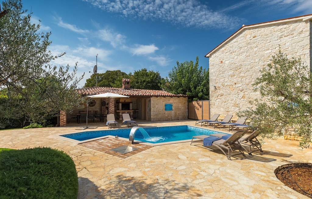 Cette villa est située dans un environnement calme et rural, ce qui en fait une retraite parfaite et tranquille de l'agitation de la vie moderne. Néanmoins, elle se trouve à une courte distance en voiture des centres touristiques et historiques d'Istrie. Cette villa en pierre de quatre chambres offre toutes une salle de bain privée et une piscine privée. La résidence en pierre, de 170 m2, a une capacité de 8 personnes. Elle est en totale harmonie avec le paysage et l'architecture traditionnelle. La villa a été construite il y a deux siècles avec de la pierre locale et des matériaux naturels. Depuis les vérandas de la maison, on peut profiter des soirées, du ciel étoilé avec une vue magnifique sur la mer.