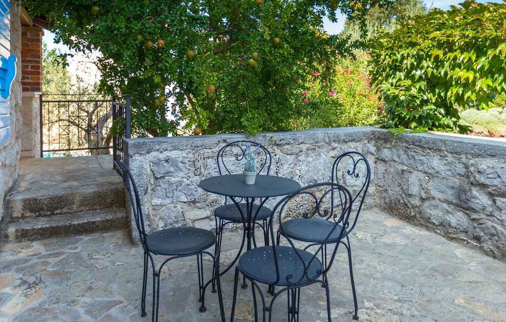 En entrant dans Villa Simone par la terrasse extérieure au rez-de-chaussée, vous trouverez un salon rustique, une salle à manger, une cuisine entièrement équipée et une salle de bain. Une agréable cheminée complète l'atmosphère. Le premier étage comprend deux chambres (une avec un lit double, une avec deux lits séparés) et une salle de bain commune. Une terrasse couverte meublée invite à se reposer et mène à une autre terrasse juste au coin de la rue.